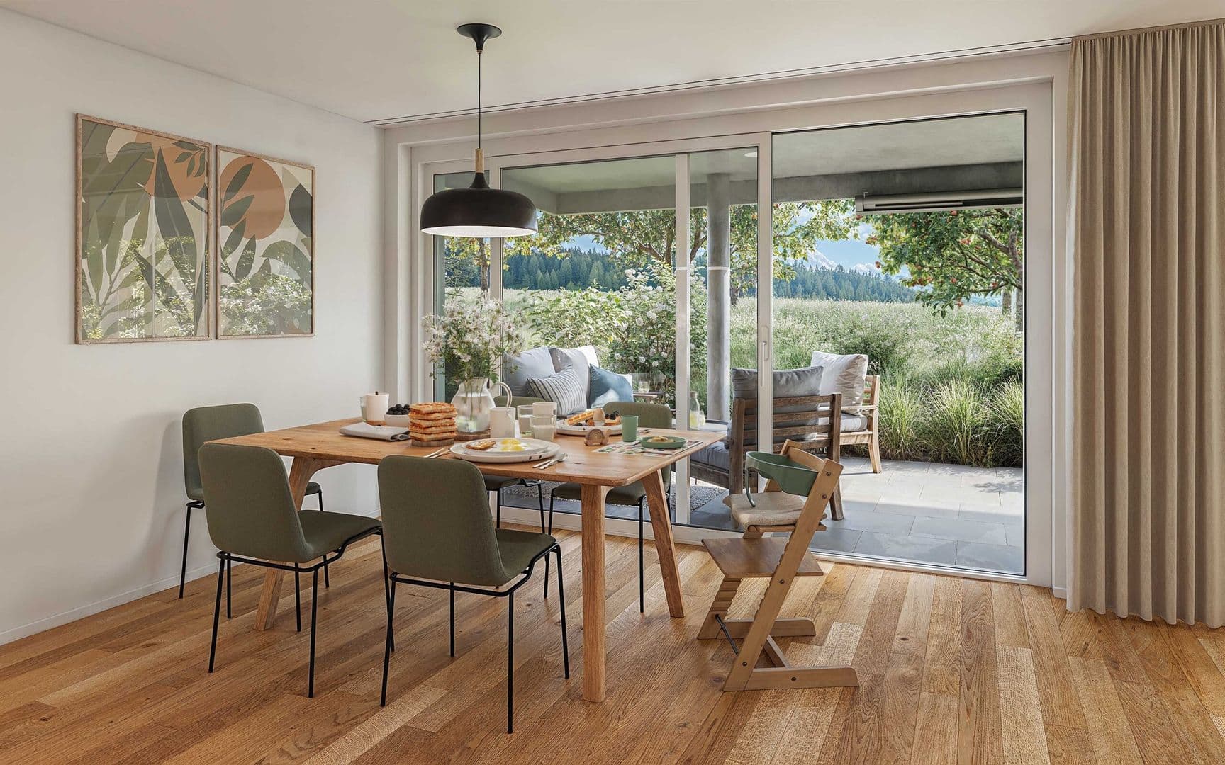 Chaque appartement a été conçu avec soin pour offrir un espace de vie chaleureux, fonctionnel et baigné de lumière naturelle. Du 2.5 au 5.5 pièces, sur un ou plusieurs étages, les logements proposent des volumes généreux, des agencements intelligents, de grandes terrasses et, au rez-de-chaussée, des jardins privatifs.