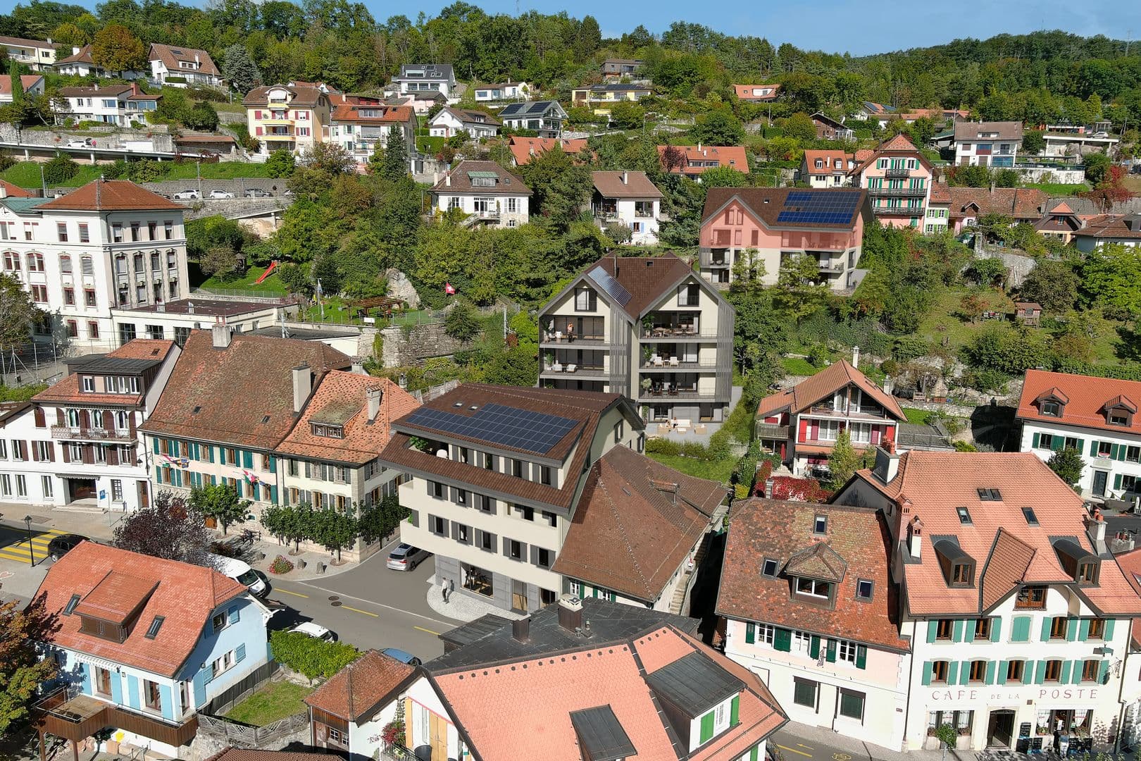 Le projet "Feuille de Vigne" propose 14 appartements répartis sur 3 immeubles, au cœur de la commune de Chexbres.