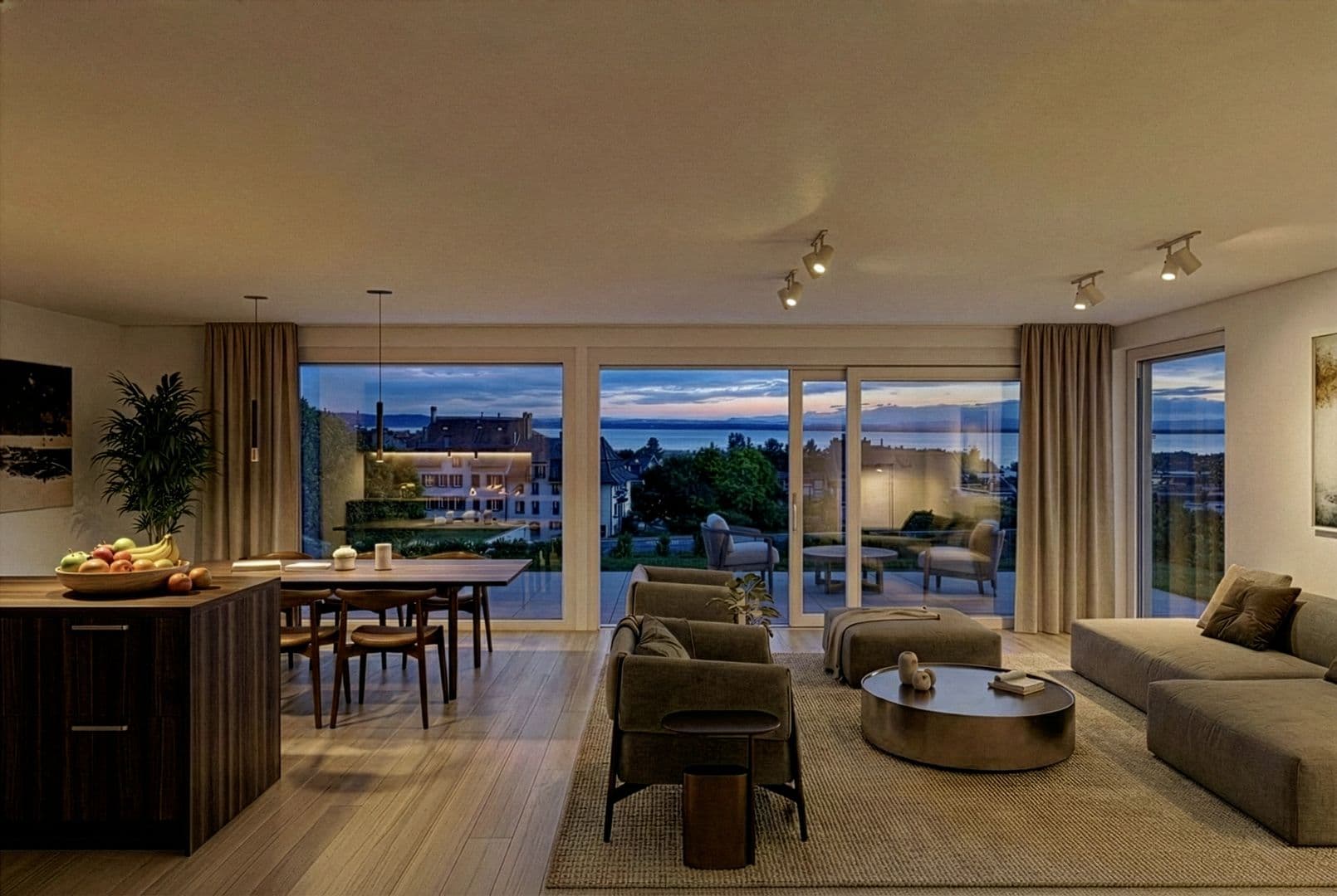 Pensé pour conjuguer lumière et confort, chaque logement bénéficie de grandes baies vitrées offrant une vue imprenable sur les vignes, le lac et les Alpes.