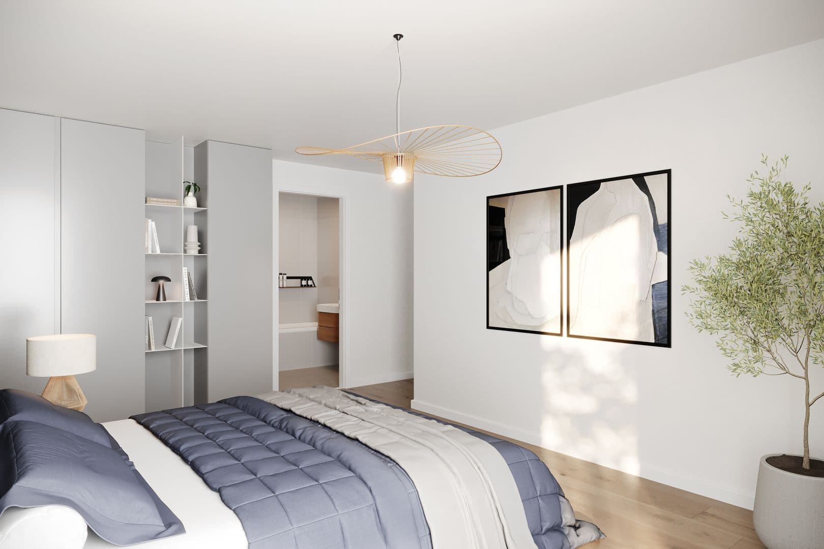 Au cœur du quartier, deux immeubles accueilleront 36 appartements à vendre, offrant un large choix de typologies, du 2.5 au 5.5 pièces, avec des surfaces habitables allant de 53 m² à 126 m². Chaque logement a été conçu pour répondre aux exigences contemporaines, avec des espaces de vie généreux et baignés de lumière naturelle. De vastes terrasses prolongent l’espace intérieur, offrant un véritable havre de paix où profiter pleinement du cadre verdoyant. Un lieu de vie où modernité, confort et sérénité se rencontrent pour votre bien-être.