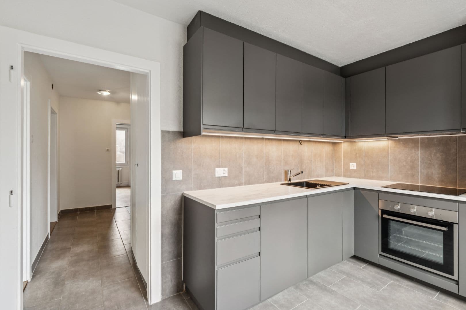 Au premier étage d’un petit immeuble bien situé au centre de Cortaillod, ce 3.5 pièces d’environ 62 m² habitables bénéficie d’une rénovation complète effectuée en 2025, sans modification de la distribution intérieure. L’appartement conserve ainsi son agencement d’origine, tout en offrant un confort actualisé.