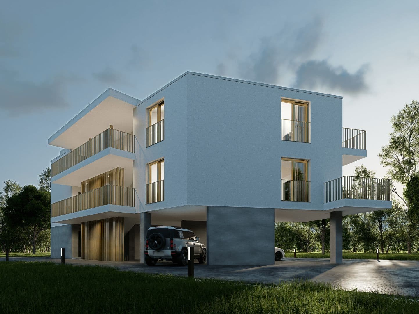 Des places de parc couvertes en sus du prix de vente complètent idéalement chaque lot.