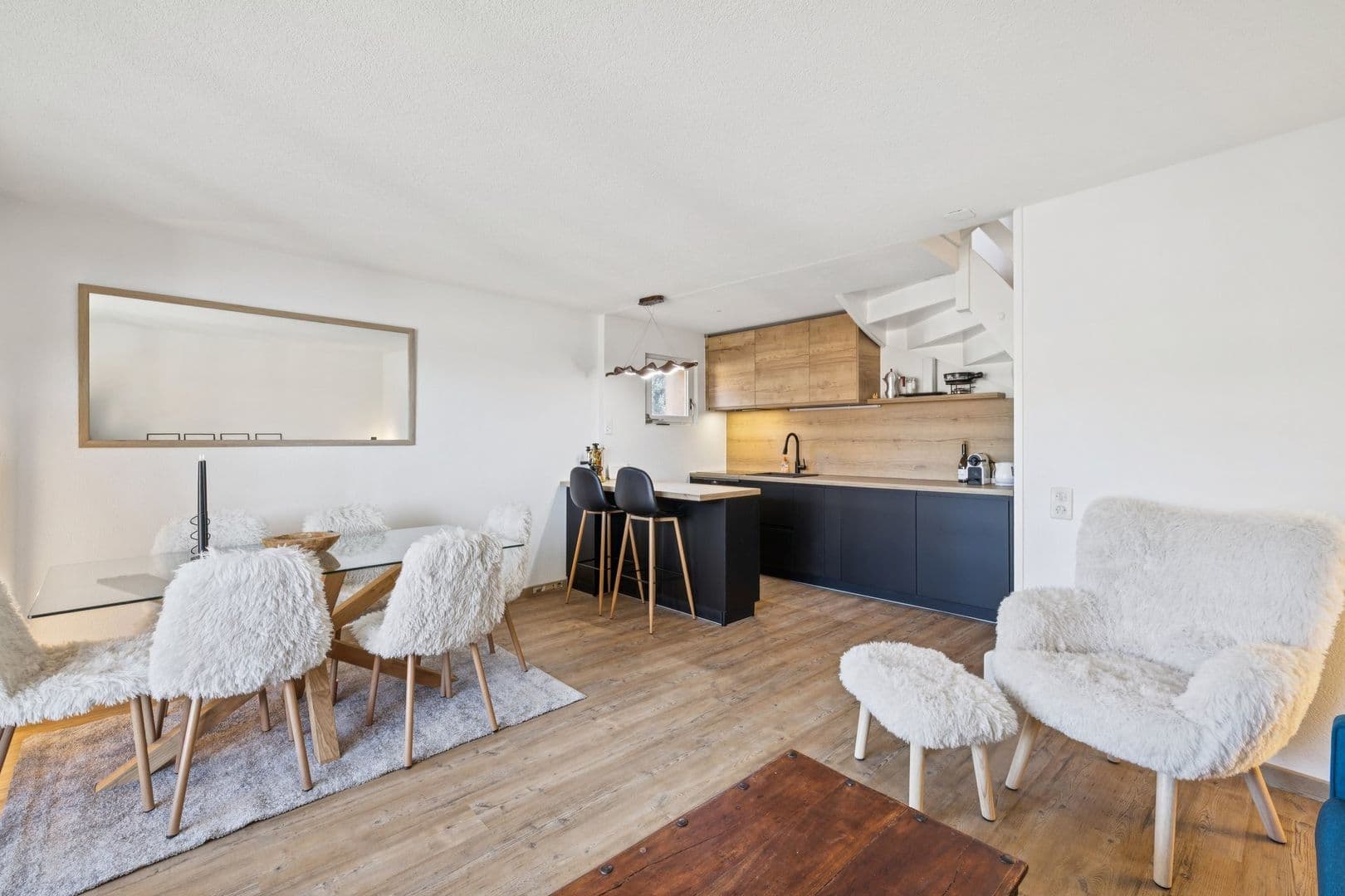 Rénové en 2025 par une architecte, ce superbe triplex de 3.5 pièces avec de beaux volumes, saura vous séduire par son design moderne et épuré de style scandinave. La cuisine équipée sur mesure haut de gamme s'ouvre sur un bel espace salon et offre la place pour une grande table à manger et un coin salon. Le balcon donne sur le centre du village et les montagnes. Les deux chambres sont réparties chacune sur un étage et possèdent chacune sa salle de bain pour plus d'intimité.