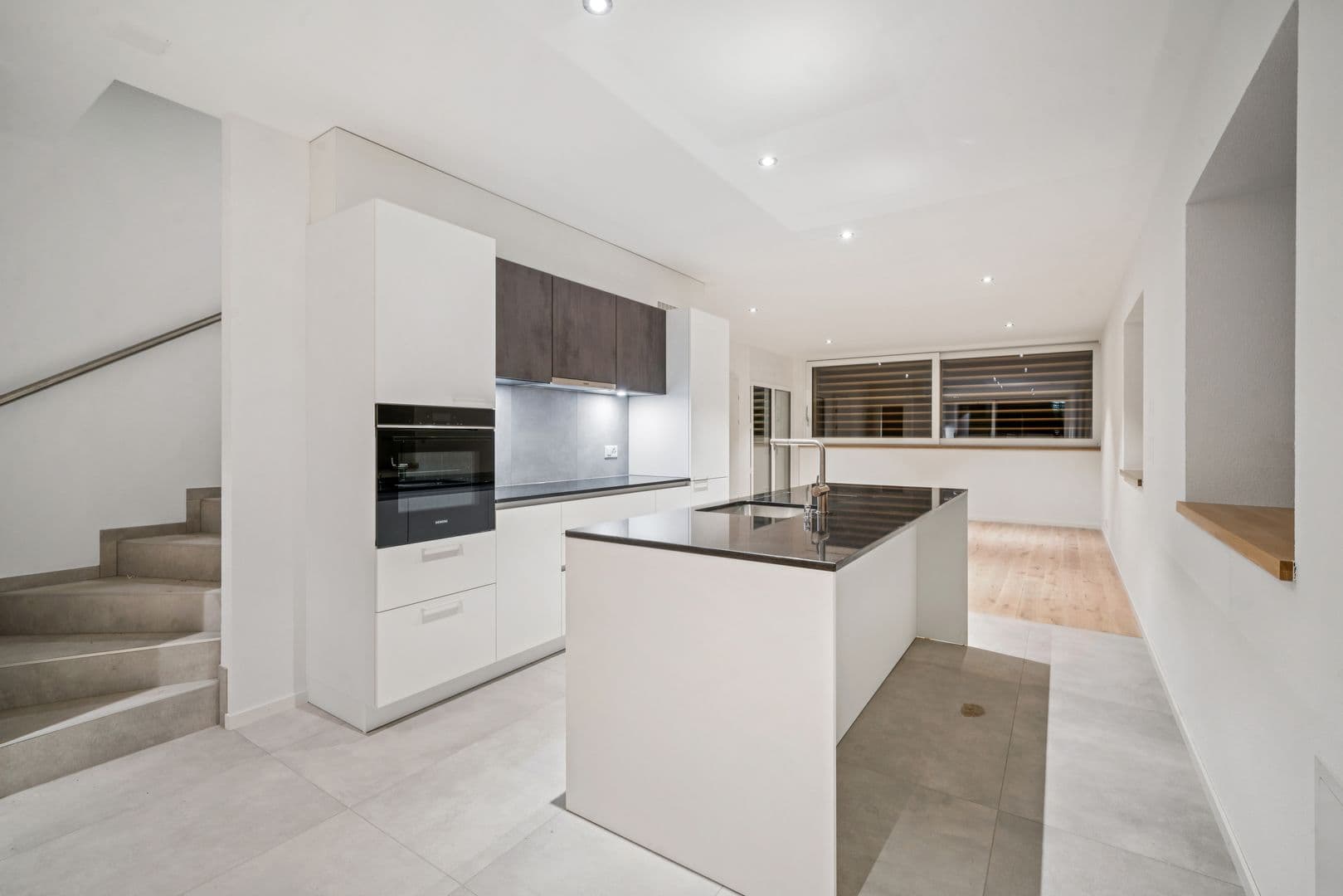 Développant une surface habitable nette de 132 m², ce logement a été conçu pour offrir un confort de vie optimal. L’espace principal se compose d’un grand séjour lumineux avec salle à manger et cuisine ouverte équipée d’un îlot central, le tout donnant accès à une belle loggia.