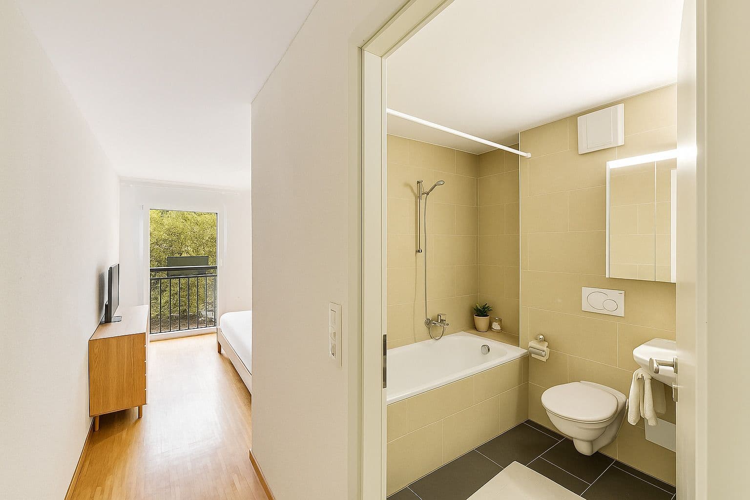 Finitions soignées et atmosphère chaleureuse dans un environnement résidentiel calme