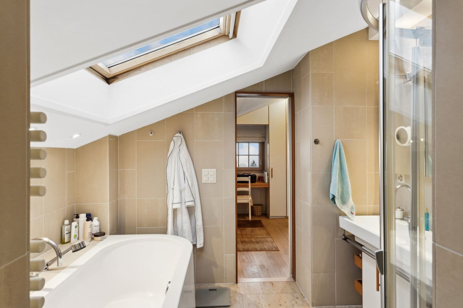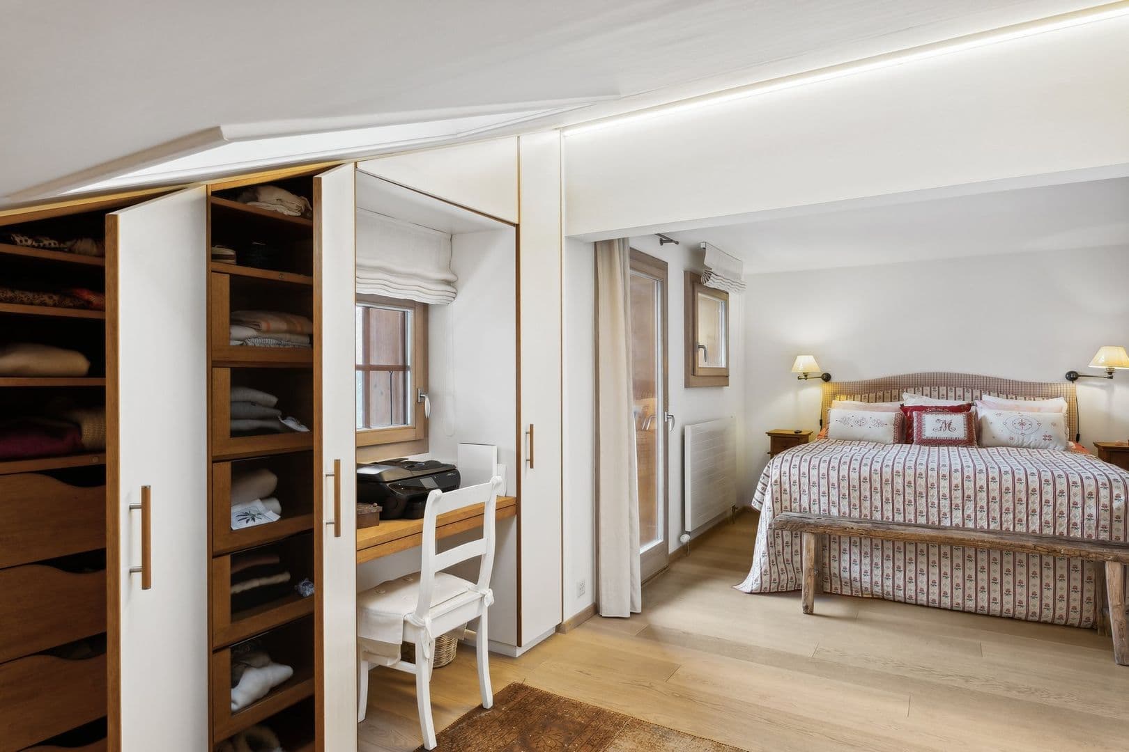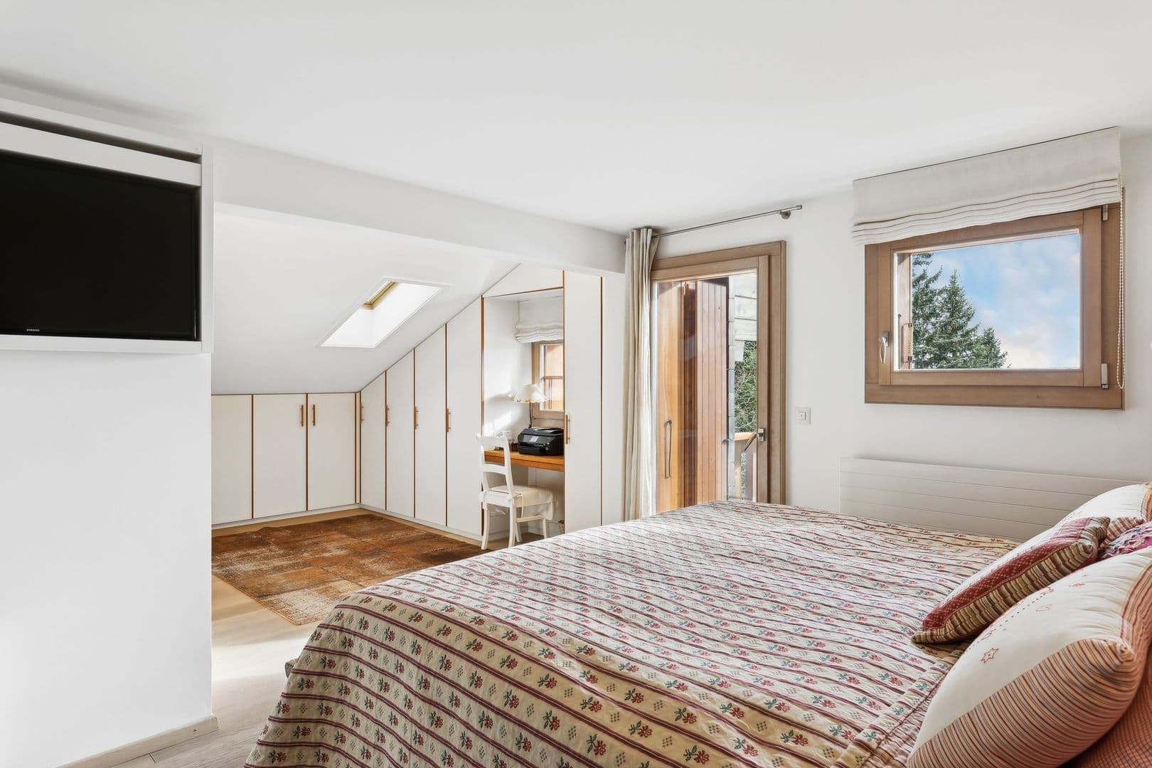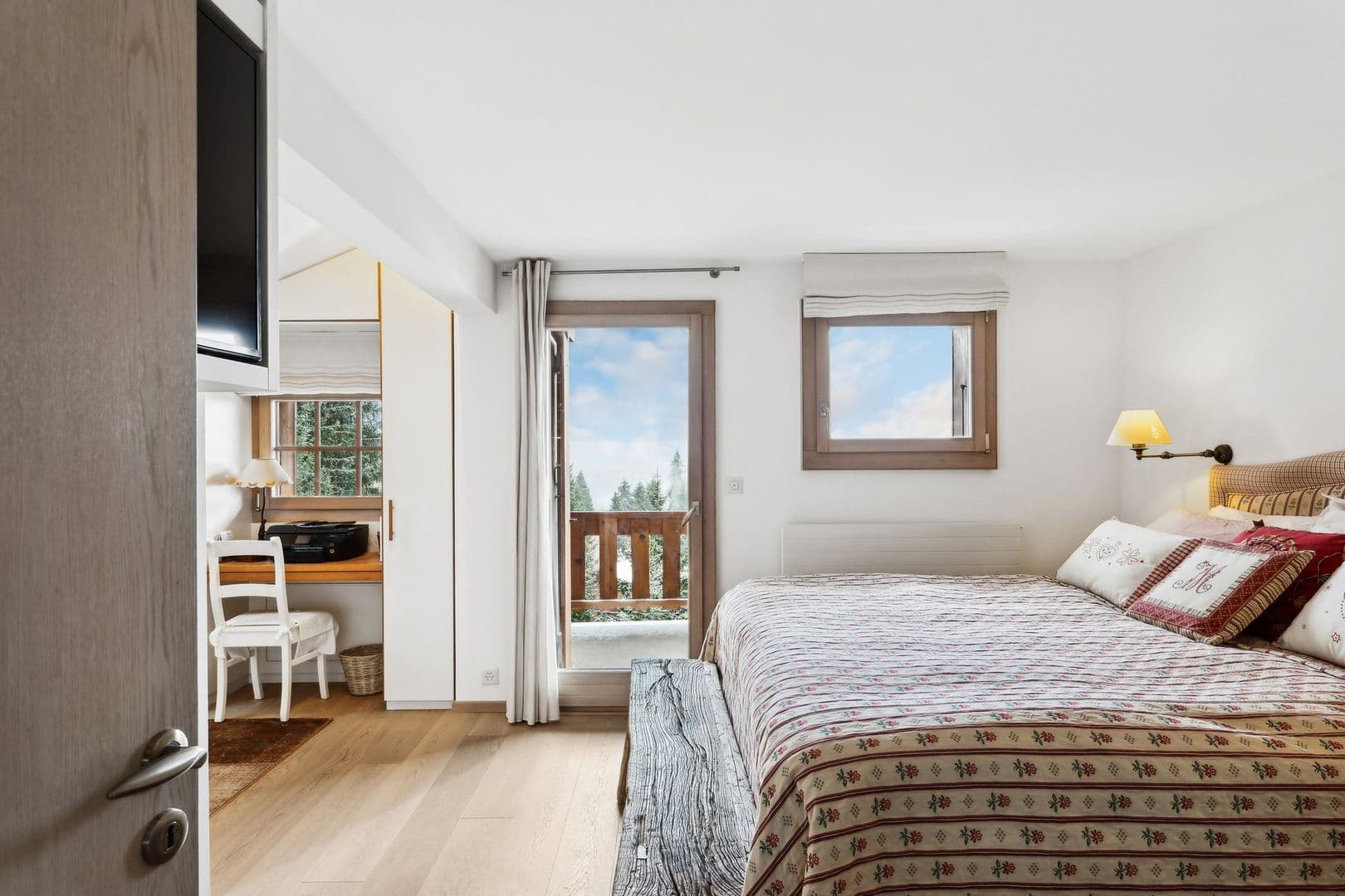 Grace à une orientation Sud, il bénéficie d'un ensoleillement tout au long de la journée. Le double séjour et chambres ont leur accès direct sur un balcon où il fait bon partager un repas avec la famille et les amis, profiter de la vue sur les massifs alpins, sous le soleil ou les étoiles!