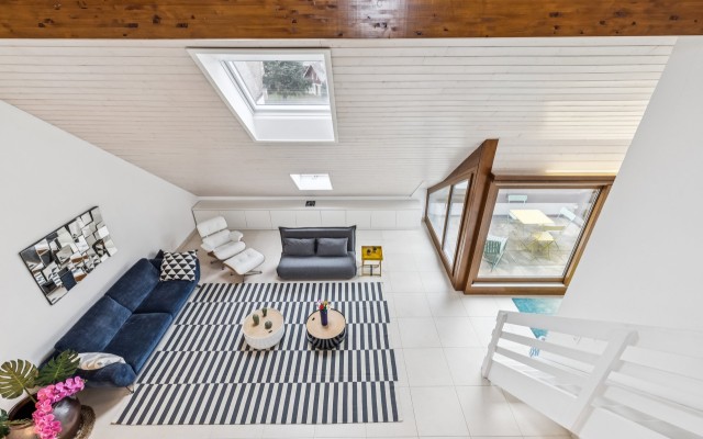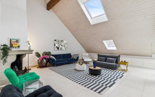 Situé dans un quartier calme et sans aucune nuisance, ce magnifique duplex en attique de 6,5 pièces bénéficie d’une luminosité idéale et d’une sensation d’espace.