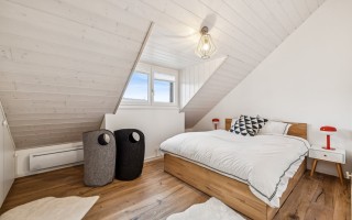 Le bien dispose de quatre chambres à coucher, dont un espace parentale indépendant avec salle de douche italienne et wc séparé. Les deux autres chambres au rez inférieure sont confortables, et la quatrième chambre est située à l’étage supérieur (mezzanine), une sorte de galerie ouverte pouvant aussi faire office de bureau, d'espace jeux ou tv-room par exemple. En tout, il y a 2 salles de bains (1 baignoire et 1 douche) et 2 wc séparés.