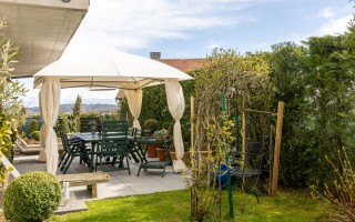 L’extérieur, véritable atout de ce bien, prolonge naturellement les espaces de vie. Une vaste terrasse accompagnée d’un balcon, représentant environ 55 m², permet de profiter pleinement des beaux jours, tandis qu’un jardin privatif d’environ 120 m², entièrement clôturé et soigneusement aménagé, crée un cadre intimiste et apaisant. Pergola, haies végétales, éclairage extérieur et fontaine décorative, commandée depuis l’intérieur, composent un ensemble aussi esthétique que fonctionnel, pensé pour la détente comme pour la convivialité.