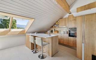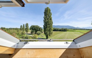 Avec ses 224 m² PPE, il profite d'une luminosité exceptionnelle et d'un panorama dégagé sur la campagne genevoise. Son vaste séjour, baigné de lumière et offrant une belle hauteur sous plafond de presque 5 mètres de hauteur, communique harmonieusement avec une cuisine entièrement équipée.