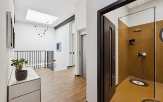 Le loft se déploie sur trois niveaux desservis par un ascenseur, offrant une distribution fluide et un confort de vie optimal.