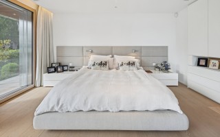 L’aménagement intérieur se distingue par un soin méticuleux apporté aux détails et par l’emploi de matériaux et finitions d’exception. La résidence principale comprend trois chambres spacieuses avec salles de bains attenantes, ainsi qu’une somptueuse suite parentale avec cheminée, terrasse privée de 28 m², salle de bains et dressing — un véritable sanctuaire de tranquillité.