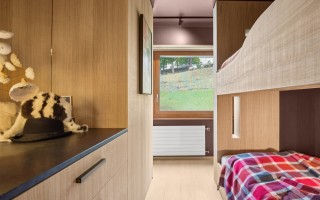 - Chambre double avec nombreux placards en bois clair,, vue sur jardin, calme