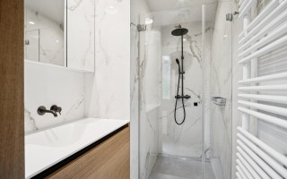- Très belle salle de douche à l'Italienne entièrement revêtue de marbre de Carrare