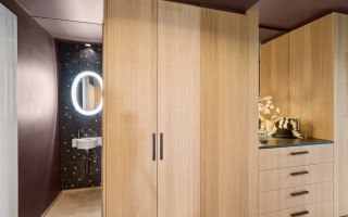 - Tout l'appartement est aménagé de bibliothèques, niches, dressings et placards en bois blond de grande qualité