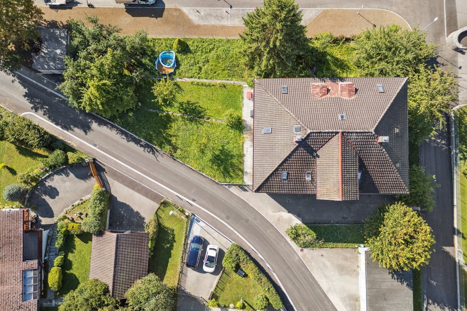 • Le quartier est entouré de verdure, avec des sentiers de randonnée et une ambiance paisible typique du Jura bernois.