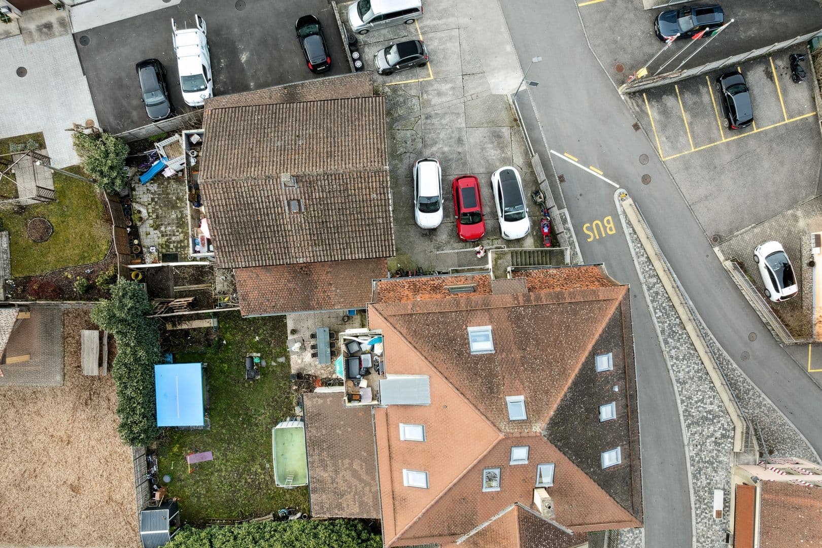 Au rez-de-chaussée, un appartement de 4.5 pièces d’environ 137 m² habitables dispose d’un vaste jardin privatif, d’une terrasse d’environ 39 m² ainsi que d’une piscine hors sol. Il bénéficie en outre d’un sous-sol entièrement privatif d’environ 116 m², accessible directement depuis l’intérieur du logement, comprenant notamment caves, locaux techniques et espace citernes. Une salle de loisirs non chauffée d’environ 39 m² complète cet ensemble.