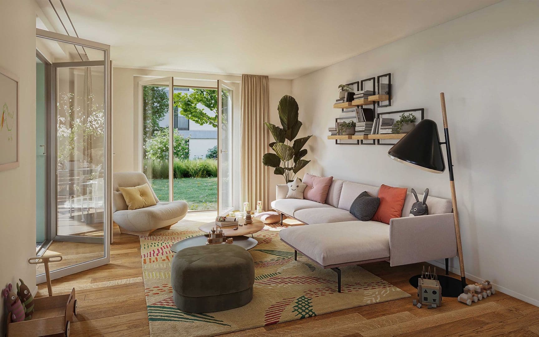 Chaque appartement a été conçu avec soin pour offrir un espace de vie chaleureux, fonctionnel et baigné de lumière naturelle. Du 2.5 au 5.5 pièces, sur un ou plusieurs étages, les logements proposent des volumes généreux, des agencements intelligents, de grandes terrasses et, au rez-de-chaussée, des jardins privatifs.