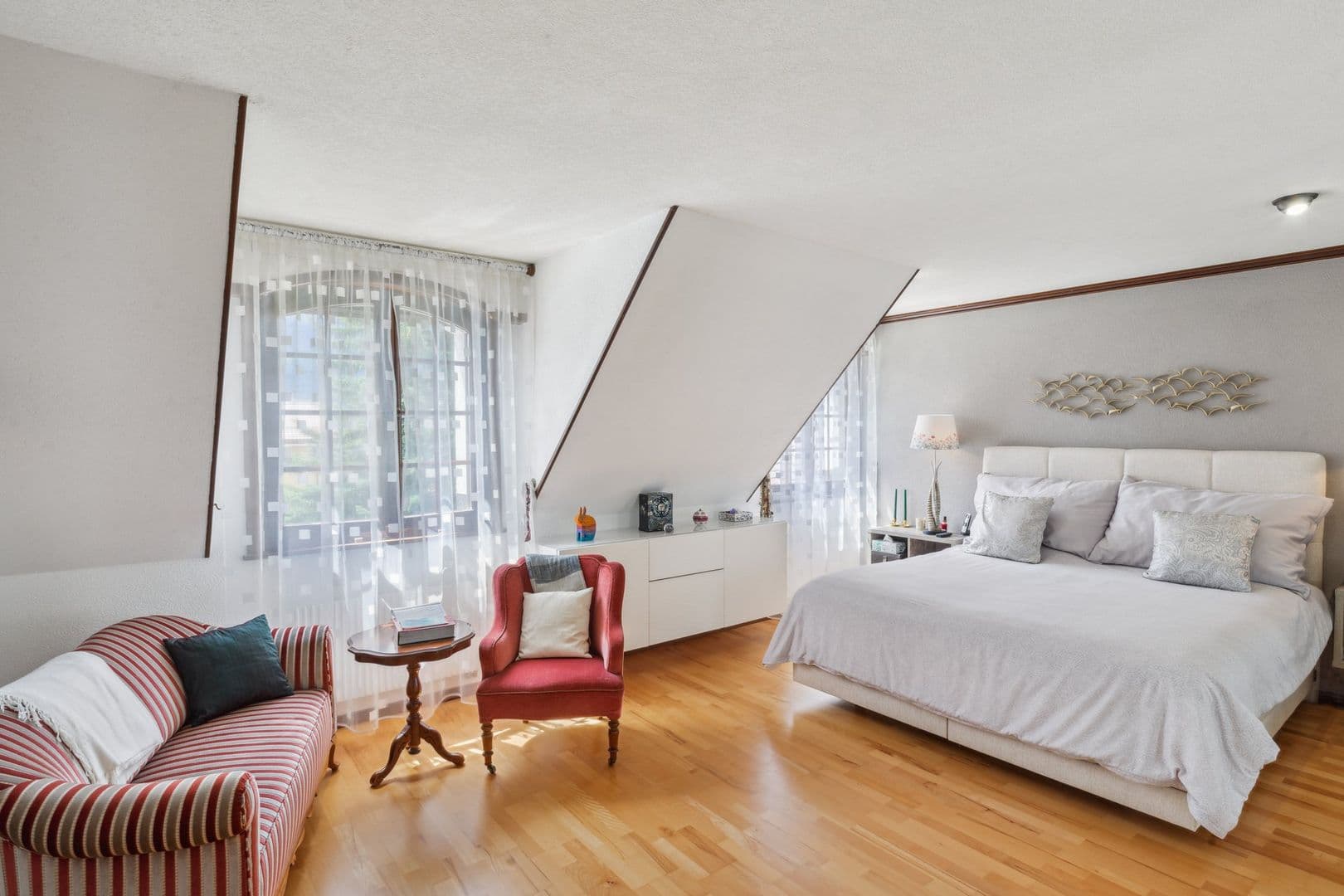 Cette magnifique propriété de haut standing de 9 pièces est située au cœur d'un quartier résidentiel sur la commune d'Aigle, à 5 minutes des écoles, du centre-ville et de toutes ses commodités: