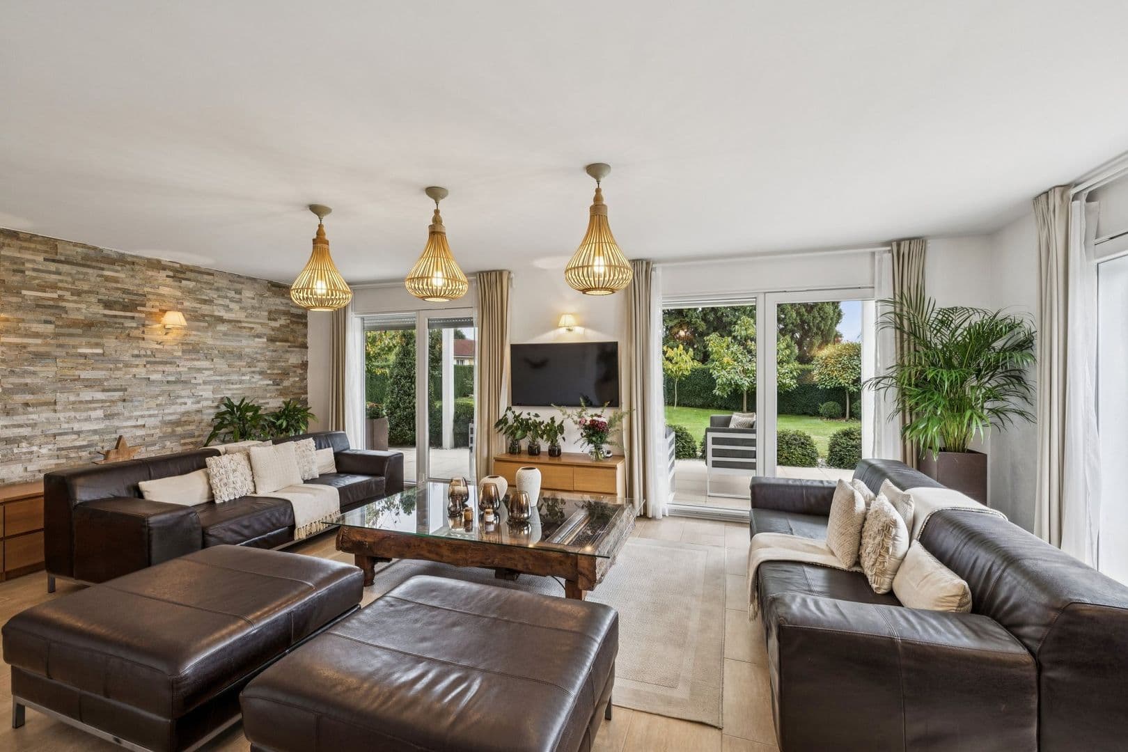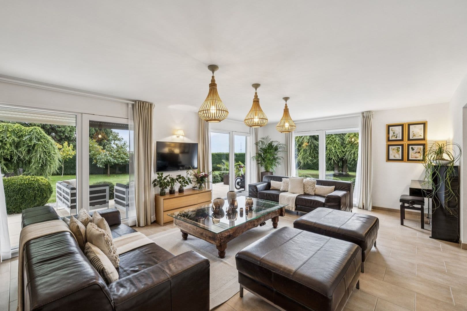 • Grand jardin paysagé avec deux terrasses, pergola bioclimatique et arrosage automatique