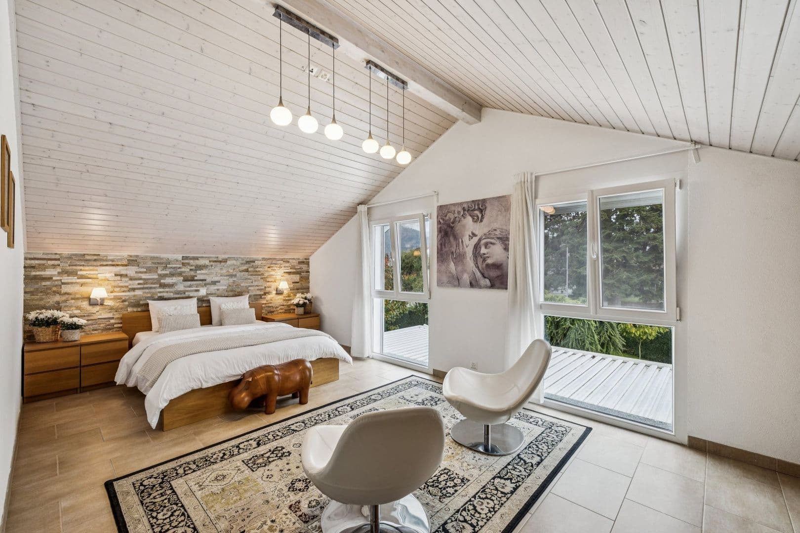 • Suite parentale généreuse avec dressing, mur en pierre naturelle et vue dégagée
