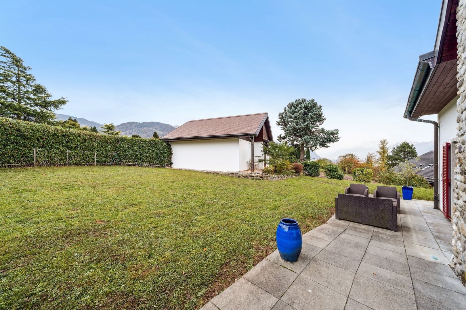 Située sur une parcelle de 1'500 m², dans la partie inférieure de la pittoresque commune de Blonay–Saint-Légier, cette demeure entièrement excavée construite en 1973, a bénéficié en 2017 d’une rénovation complète ainsi que d’une extension réalisée avec des matériaux de très haute qualité.