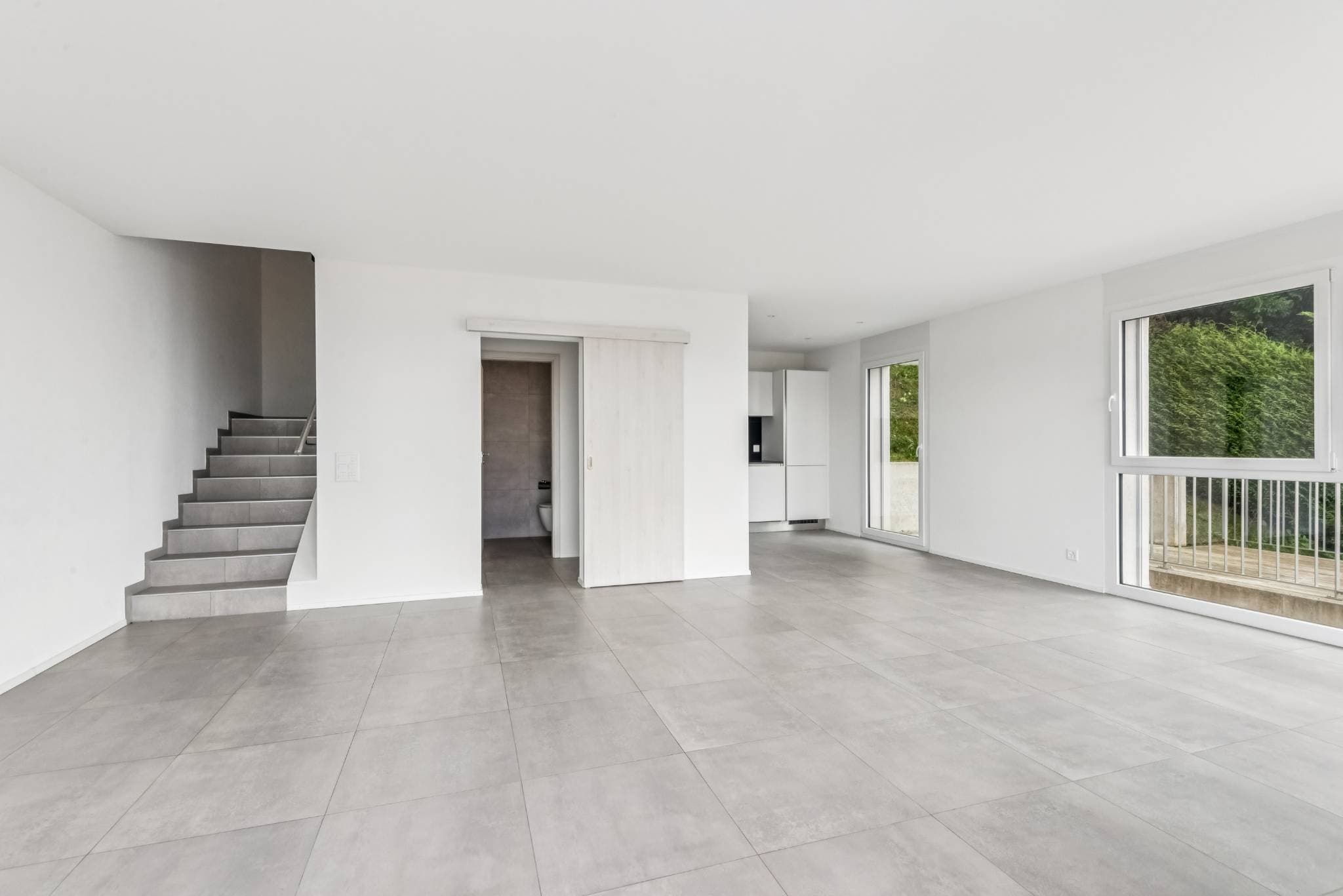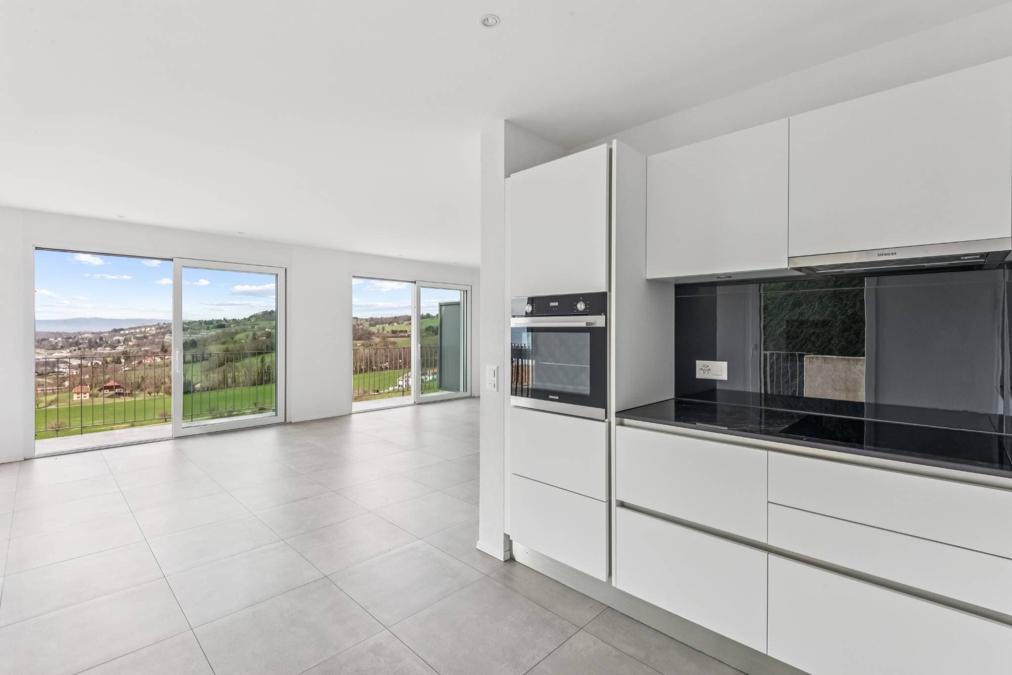 Au rez-de-chaussée se trouve la pièce de vie principale, réunissant un salon chaleureux, une salle à manger ouverte et une cuisine moderne aux lignes épurées. Grâce aux larges baies vitrées, cet espace s’étend naturellement vers le balcon et la terrasse orientés face au lac, apportant lumière et convivialité à l’ensemble. Un WC visiteurs ainsi qu’une buanderie complètent ce niveau.