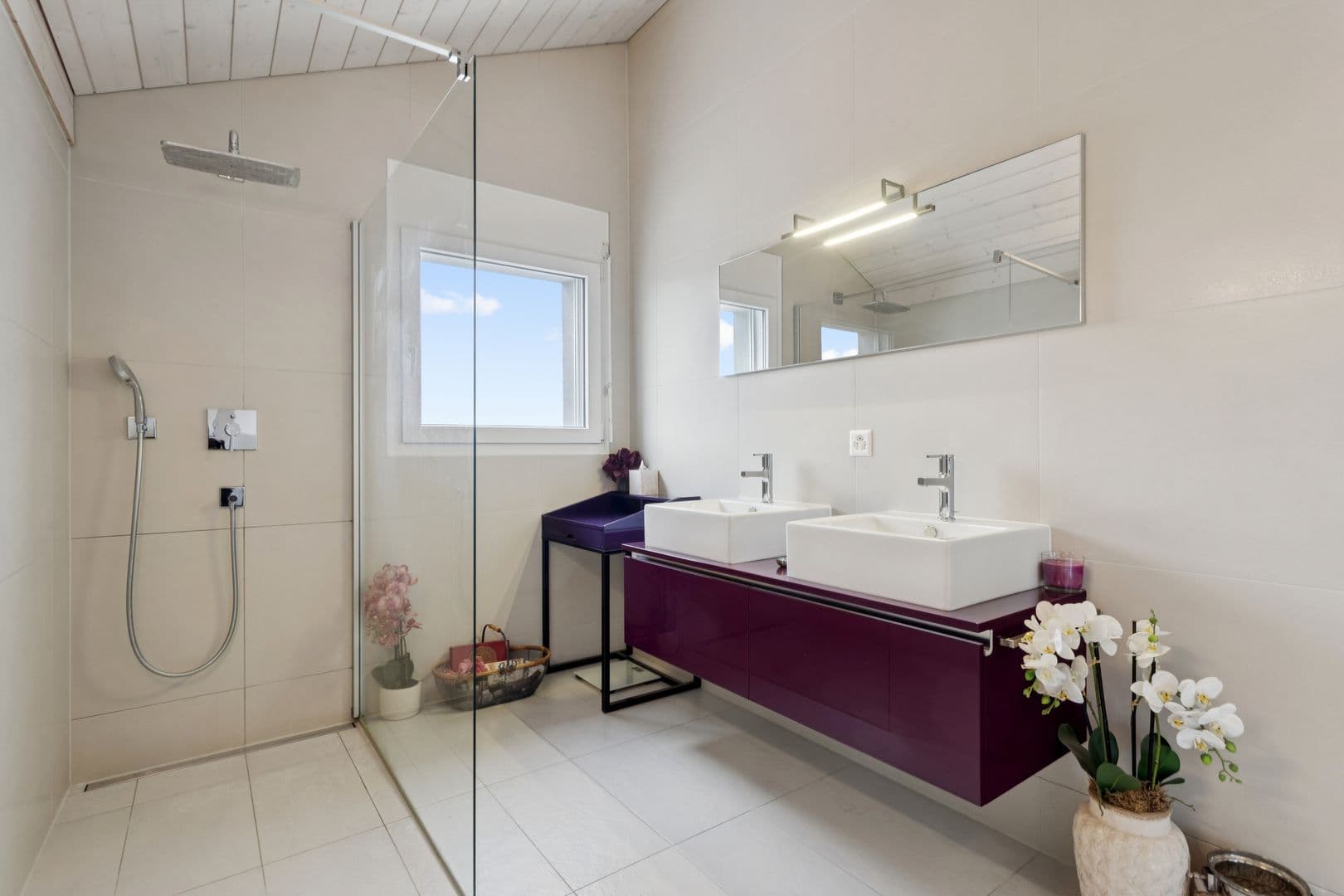 L’aménagement et la répartition des pièces de l'étage ont été pensés afin que chacun puisse profiter de son espace et de son confort. Les chambres sont spacieuses et la chambre à parentale en suite comprend une salle d'eau privative avec douche à l'italienne ainsi qu'un accès au balcon.