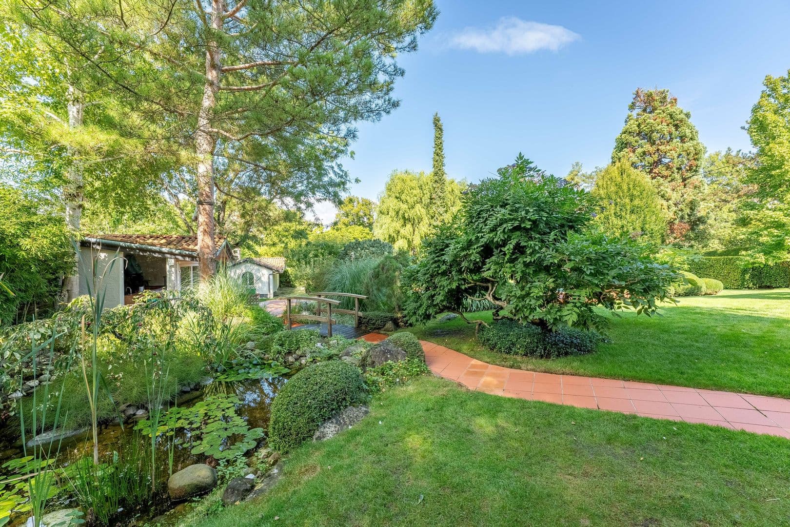La propriété dispose d'une splendide parcelle de plus de 2500m2, joliment arborée d'arbres centenaires et d'un jardin parfaitement entretenu.