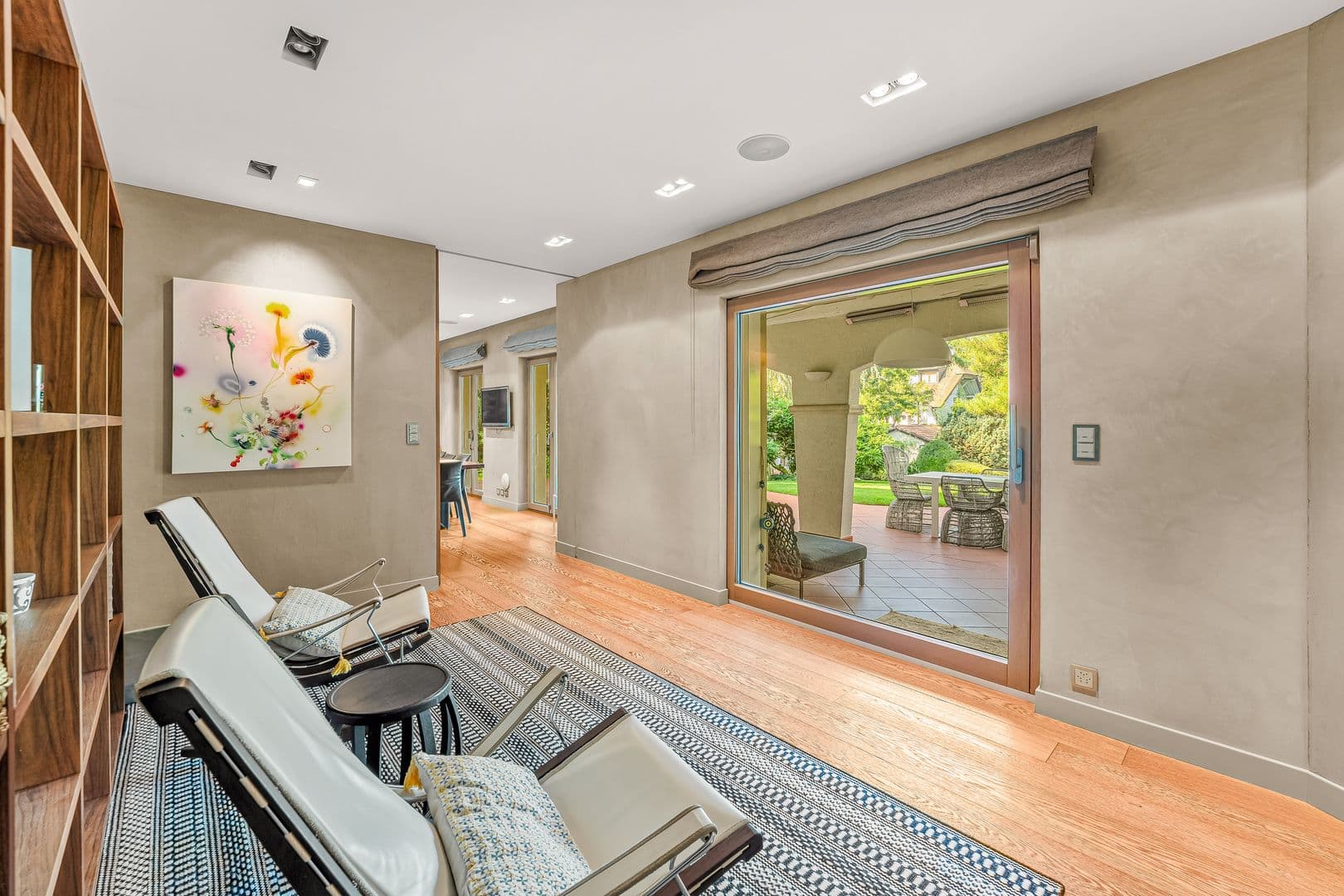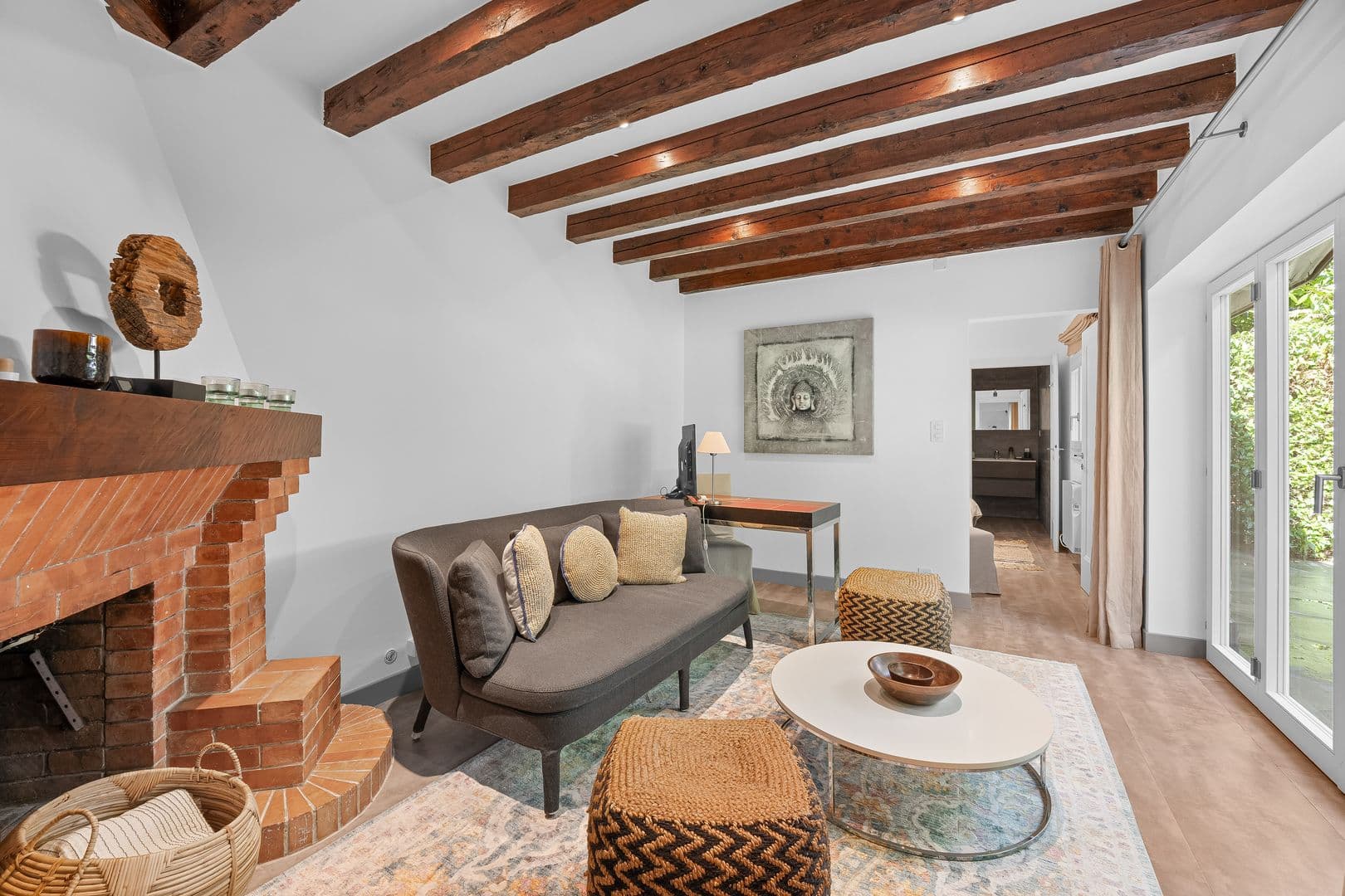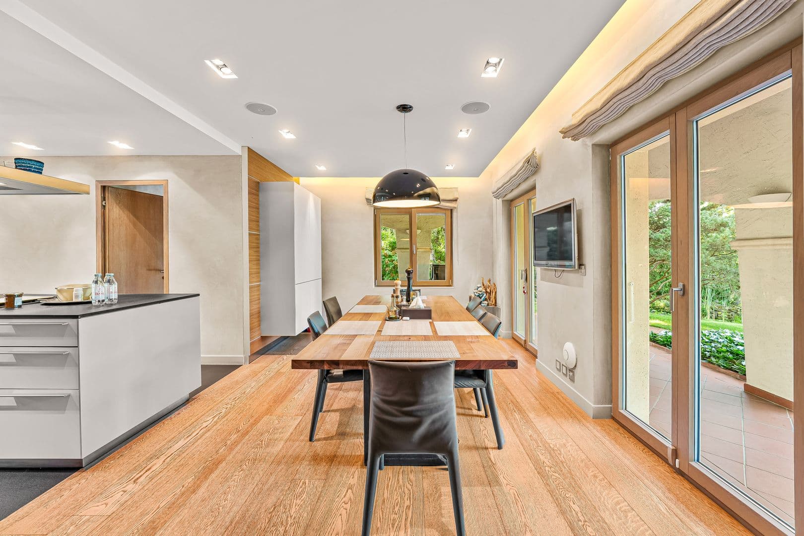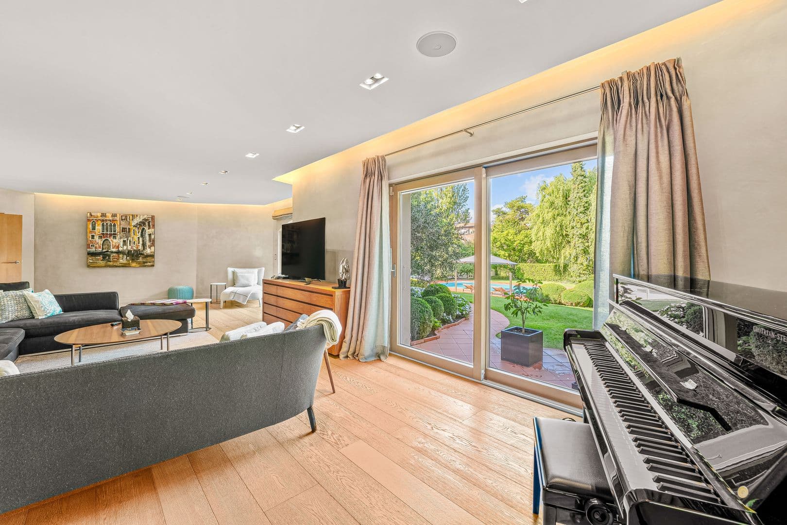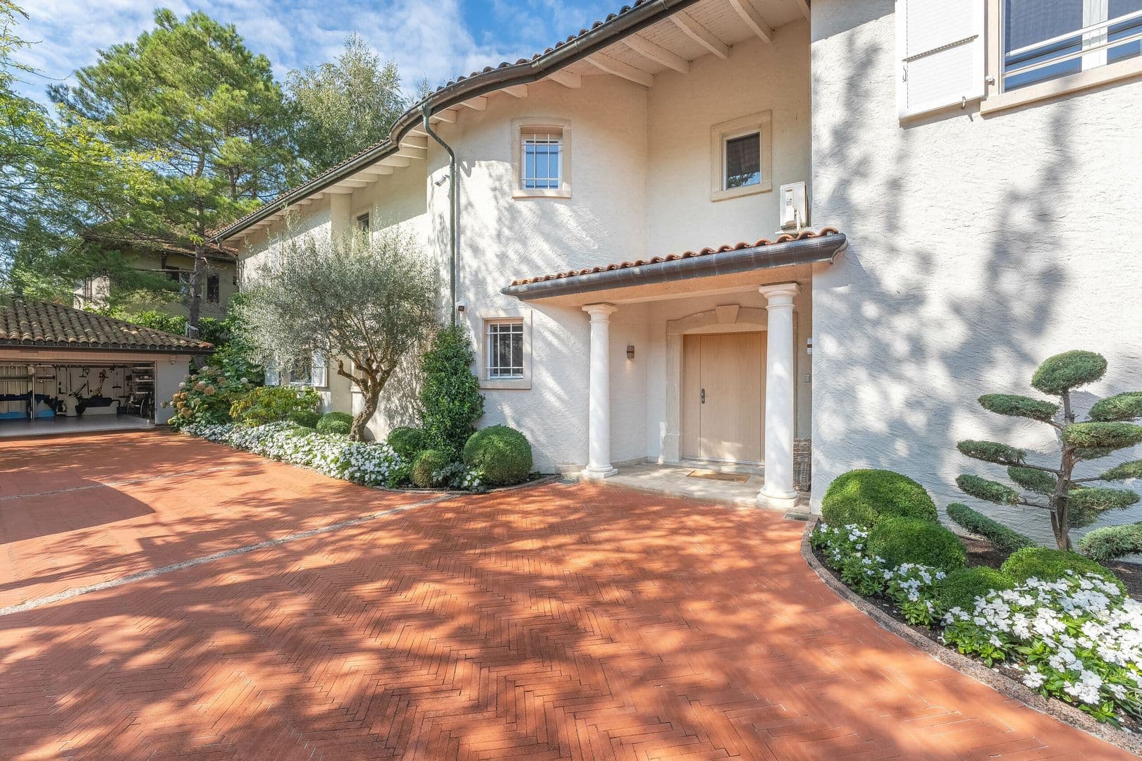 Une grande piscine, un appartement indépendant et un petit pool house complètent cet extérieur.