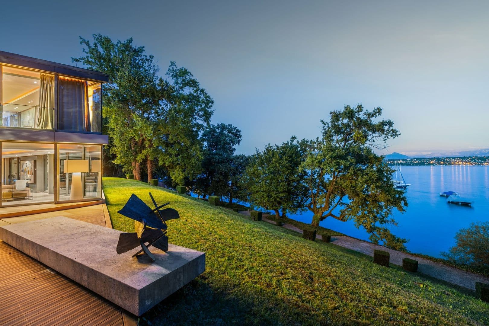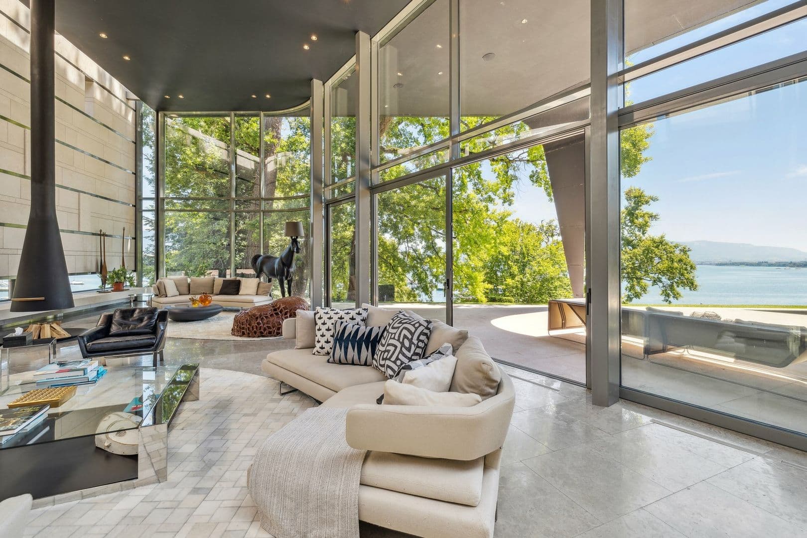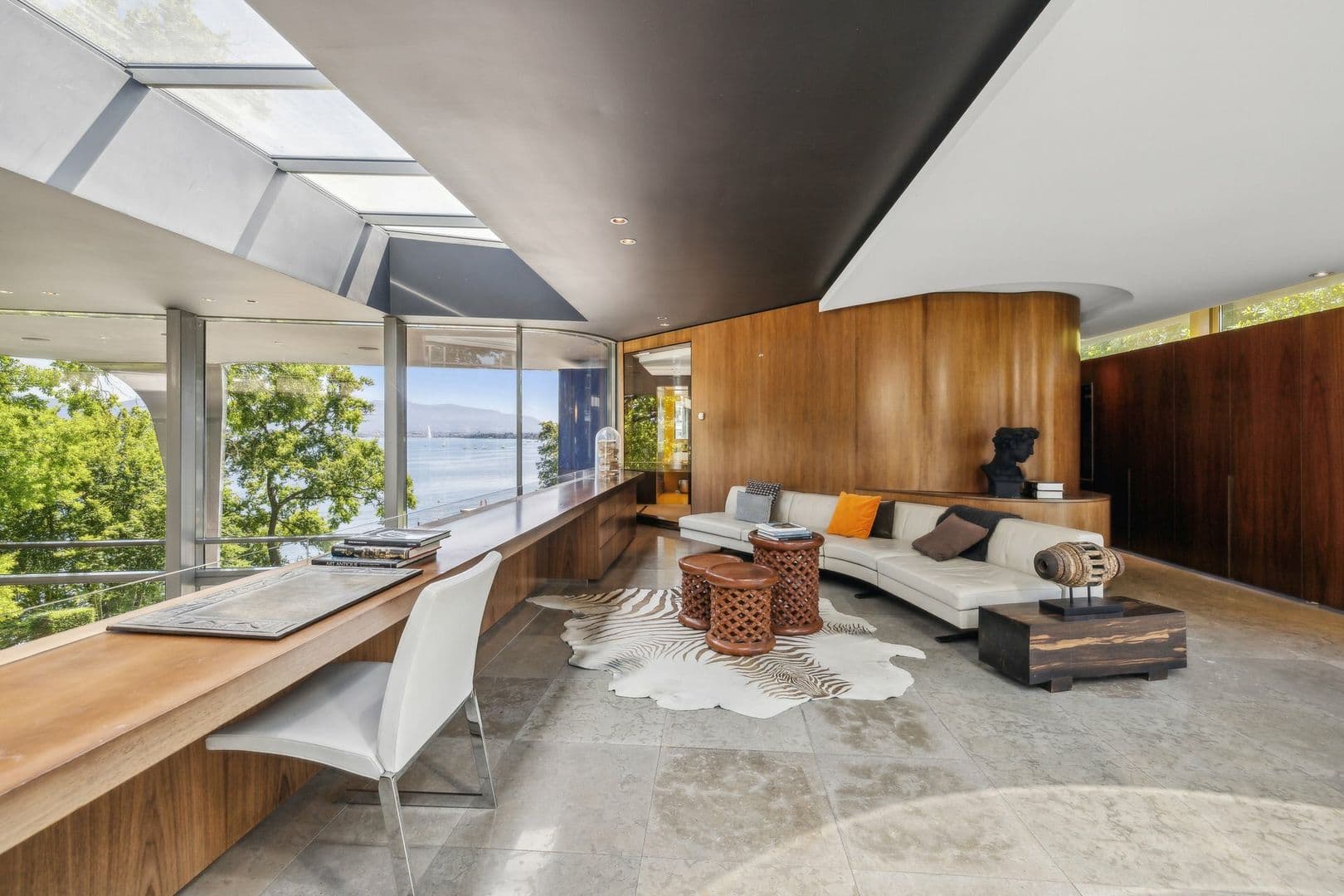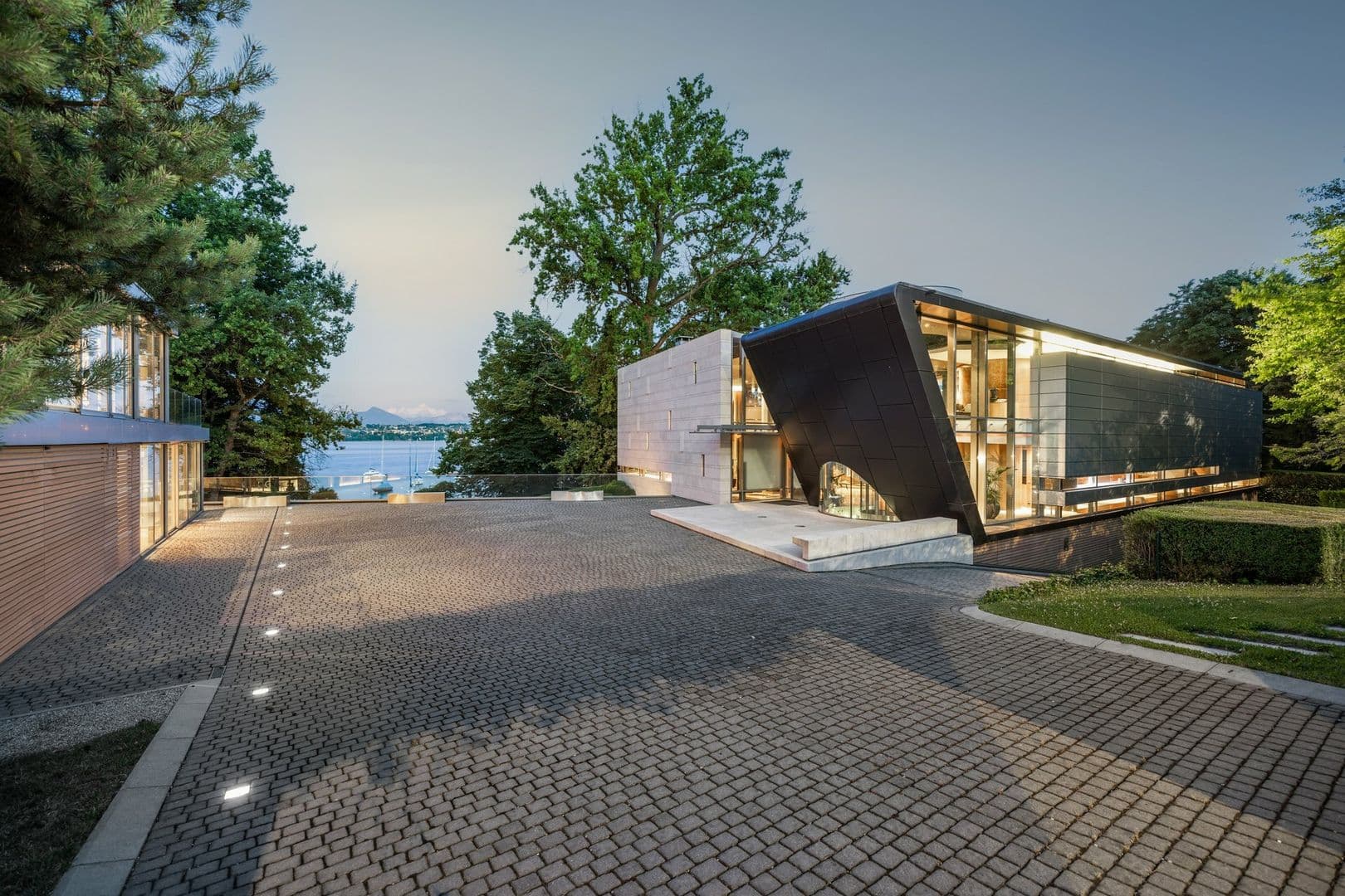 D'architecture très contemporaine et originale, cette propriété bénéficie de façades vitrées permettant une vue sur le lac à couper le souffle depuis chacune de ses pièces.