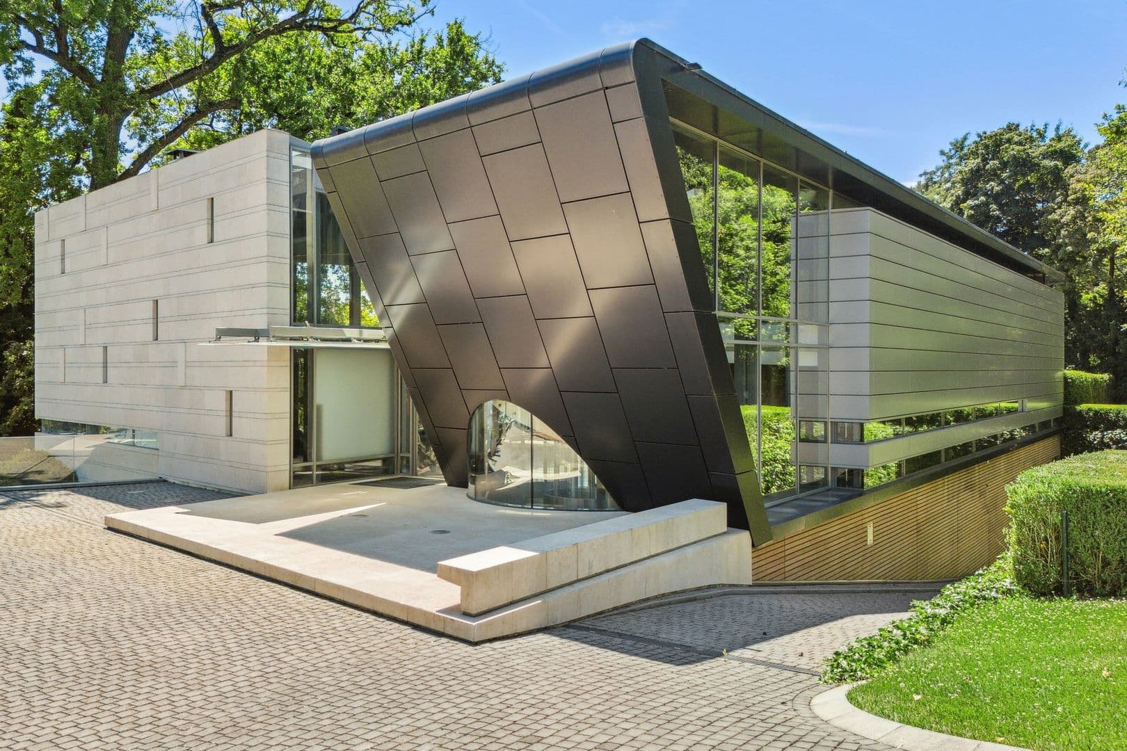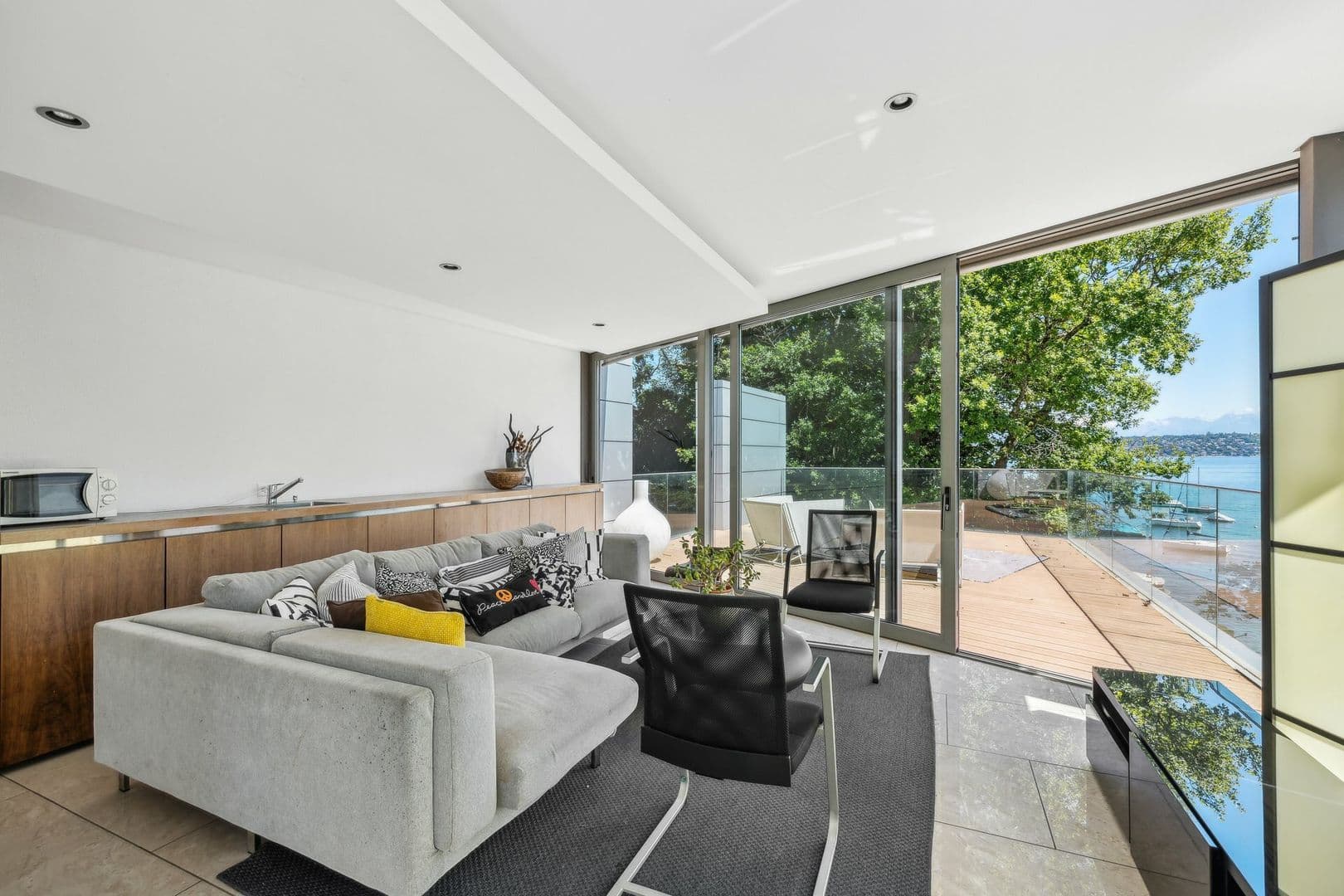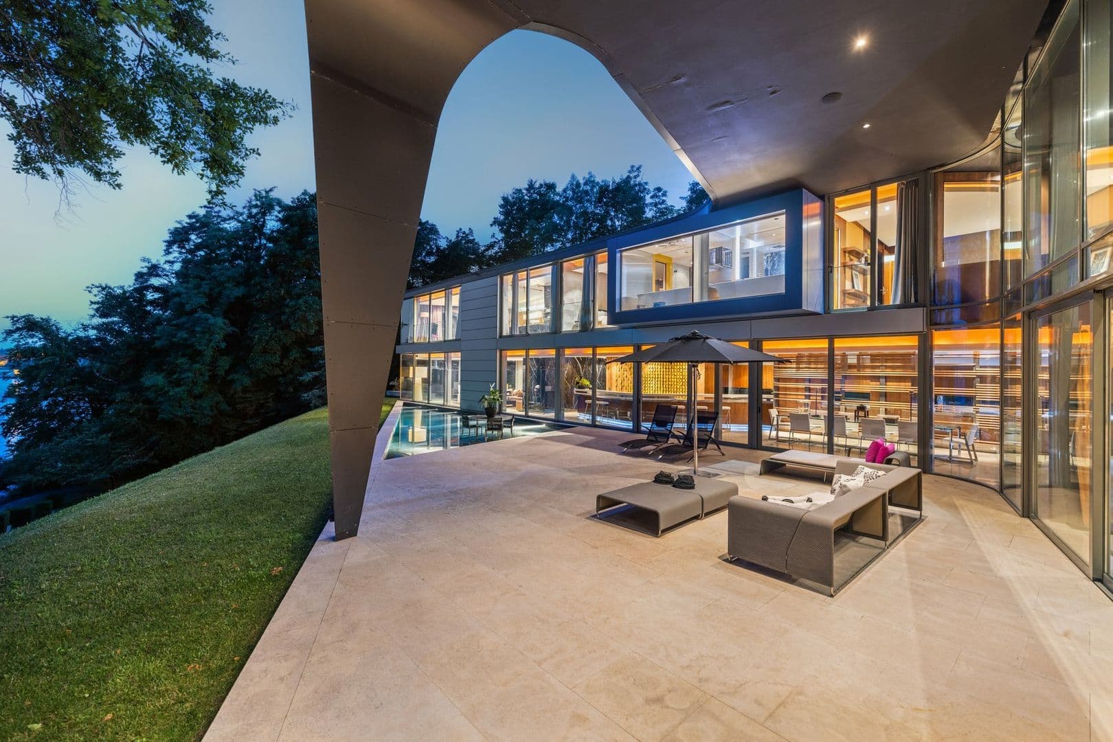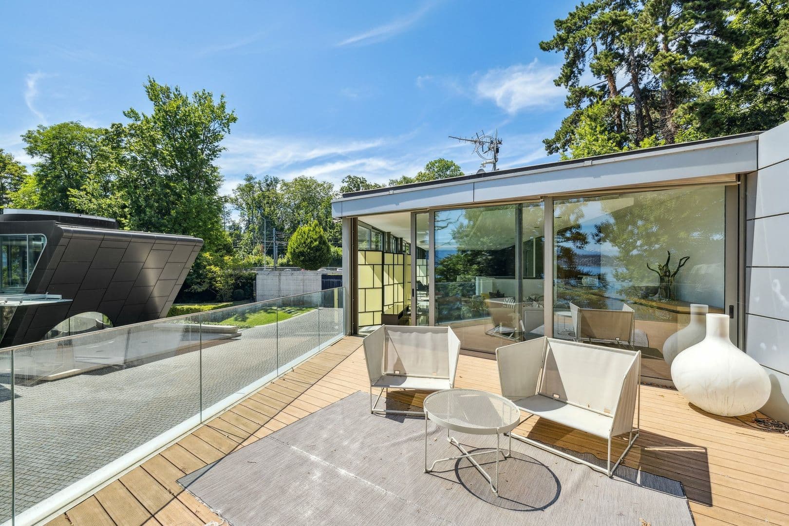 D'architecture très contemporaine et originale, cette propriété bénéficie de façades vitrées permettant une vue sur le lac à couper le souffle depuis chacune de ses pièces.