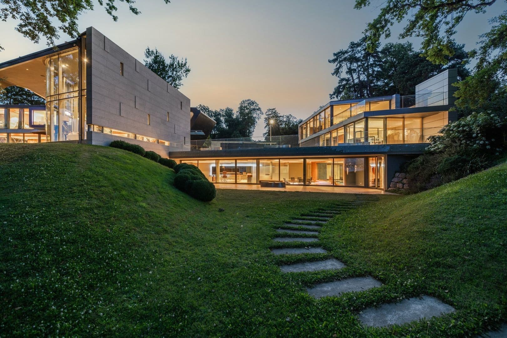 La demeure profite d'une surface habitable de presque 1'800 m² et bénéficie d'un sous-sol entièrement aménagé et ouvert en grande partie sur l'extérieur avec de larges baies vitrées.