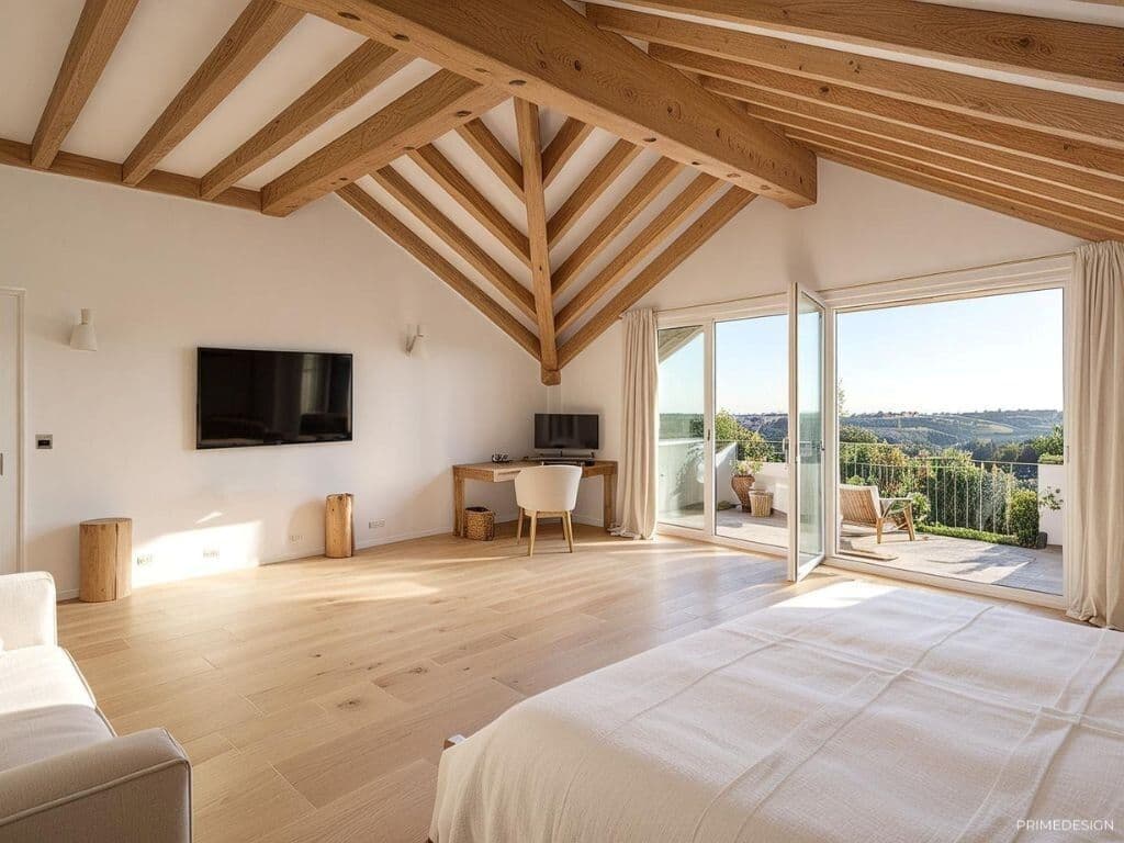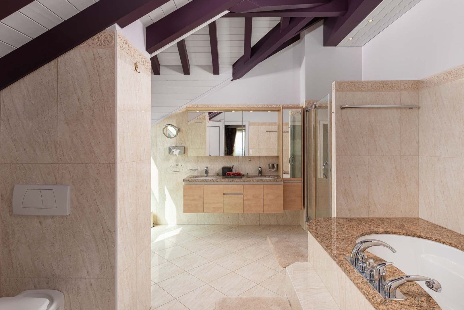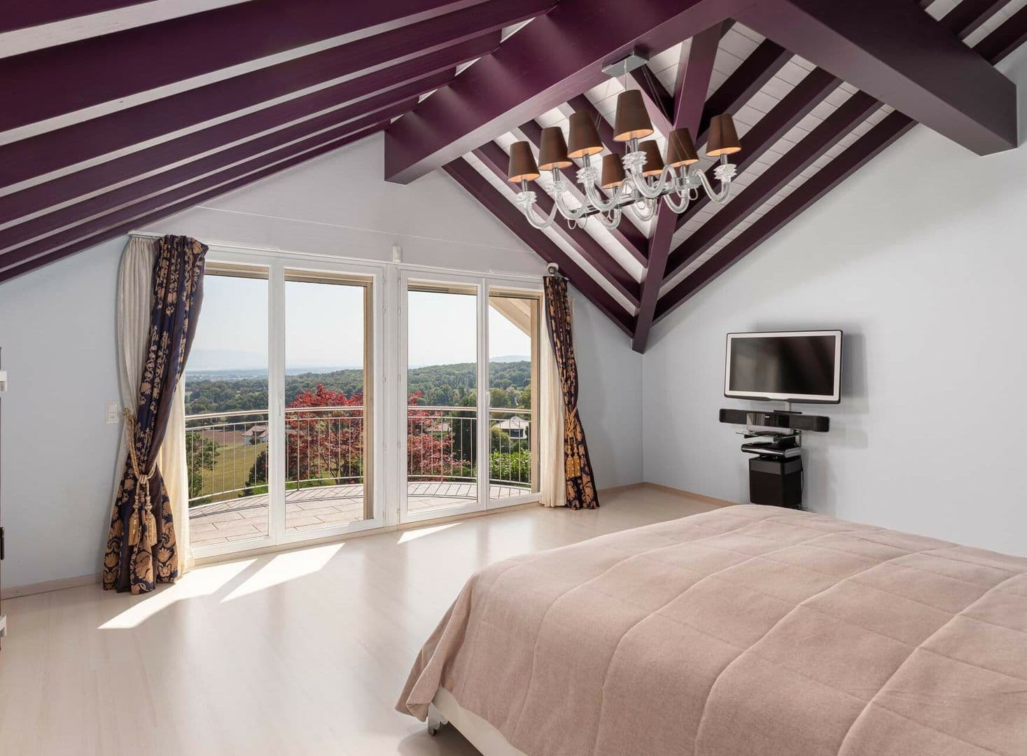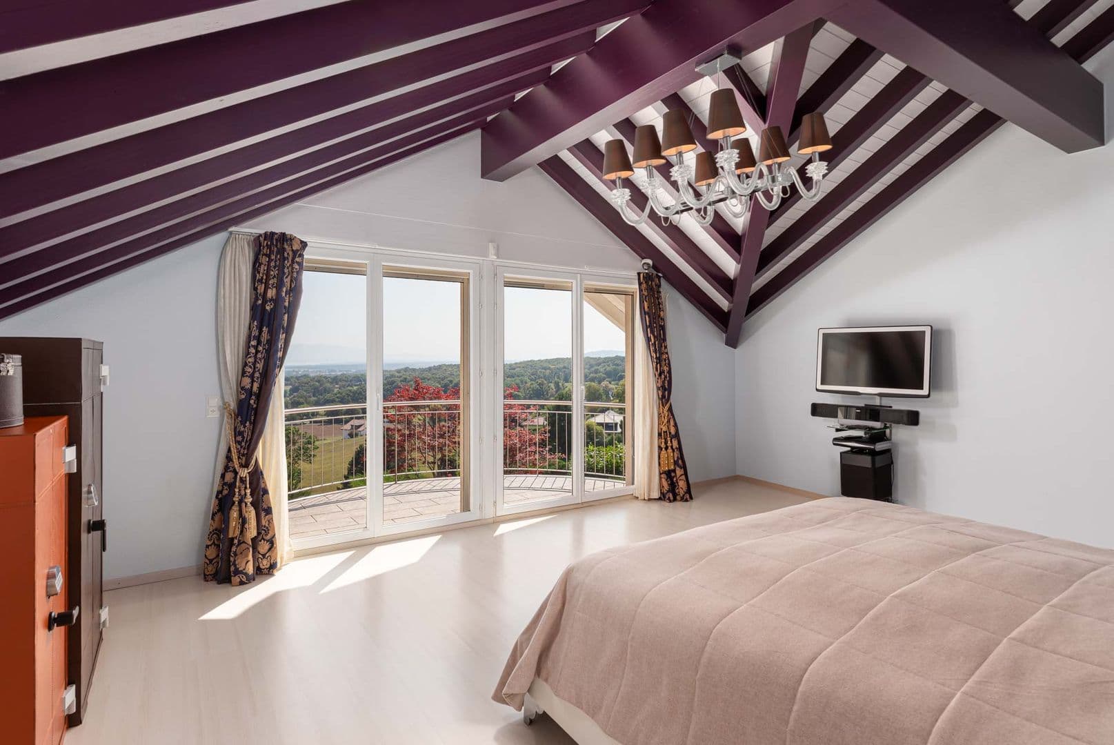 À l'étage, 3 chambres élégantes, chacune avec sa salle d'eau attenante, offrent un confort optimal. Deux de ces chambres bénéficient d'un accès direct à un balcon privé, dévoilant une vue spectaculaire sur le lac Léman, les Alpes, et la campagne environnante.