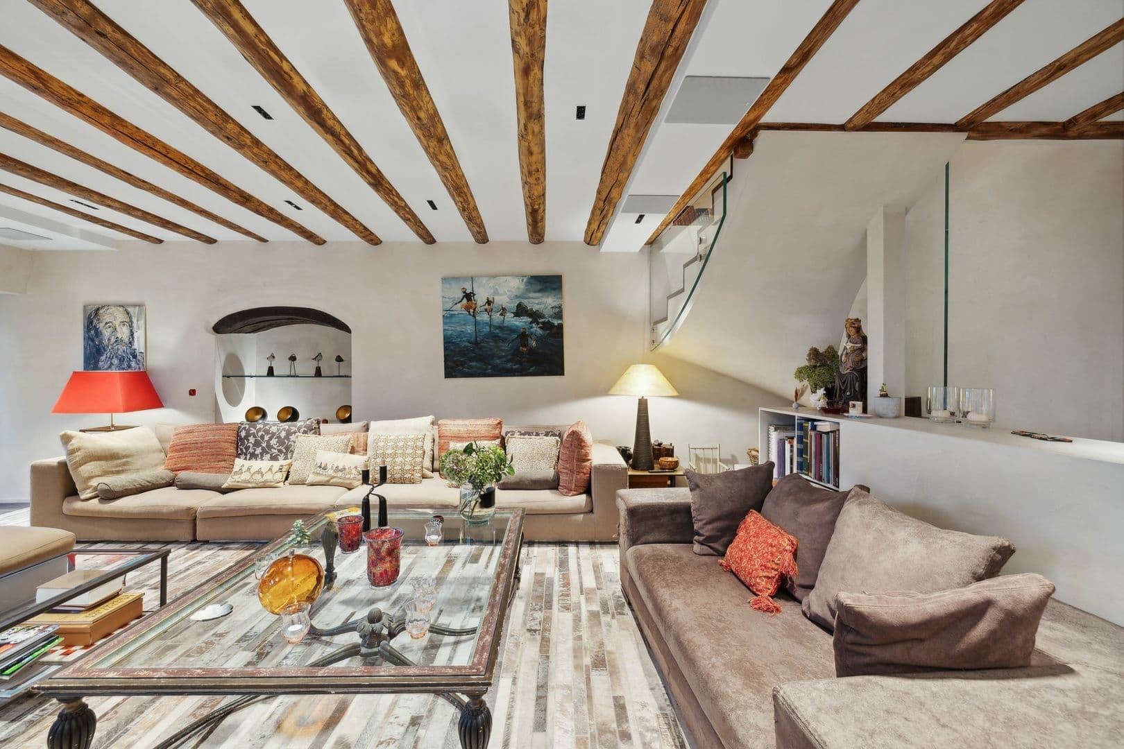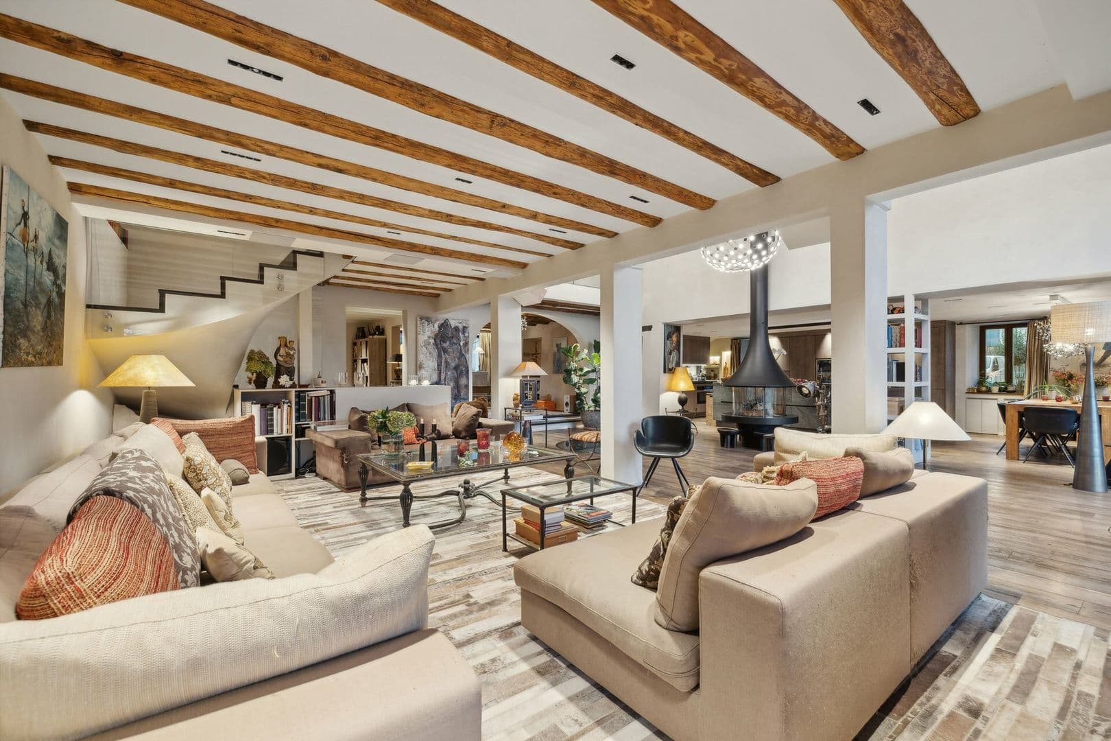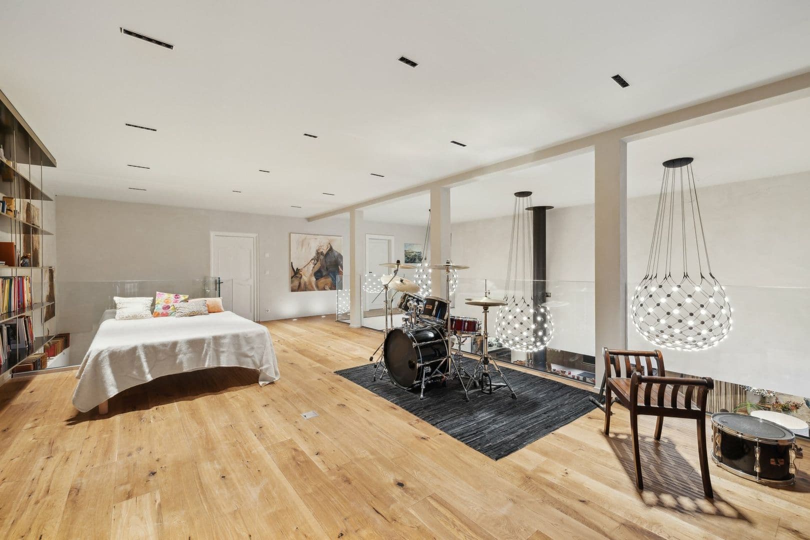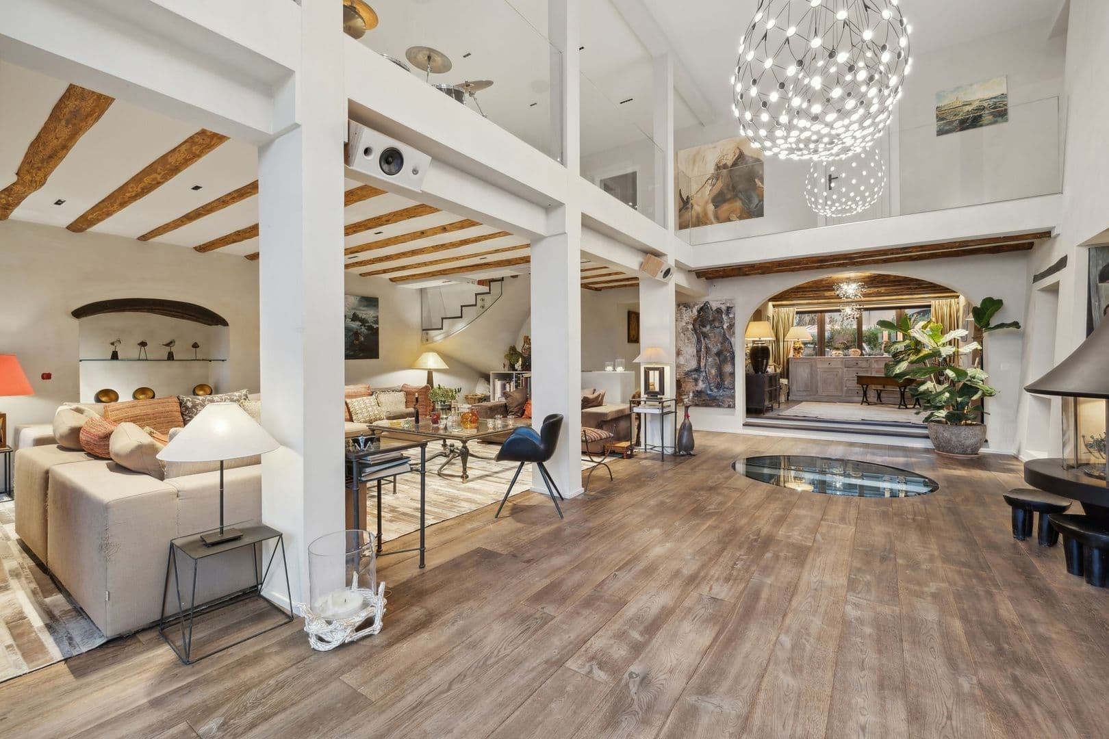 La partie jour offre de très belles et lumineuses pièces. Vous serez séduit par un grand espace commun regroupant la cuisine ouverte, le salon et la salle à manger, autour d'un poêle suédois central. Une grande cave vitrée, visible depuis le séjour, apporte du charme à cet espace.