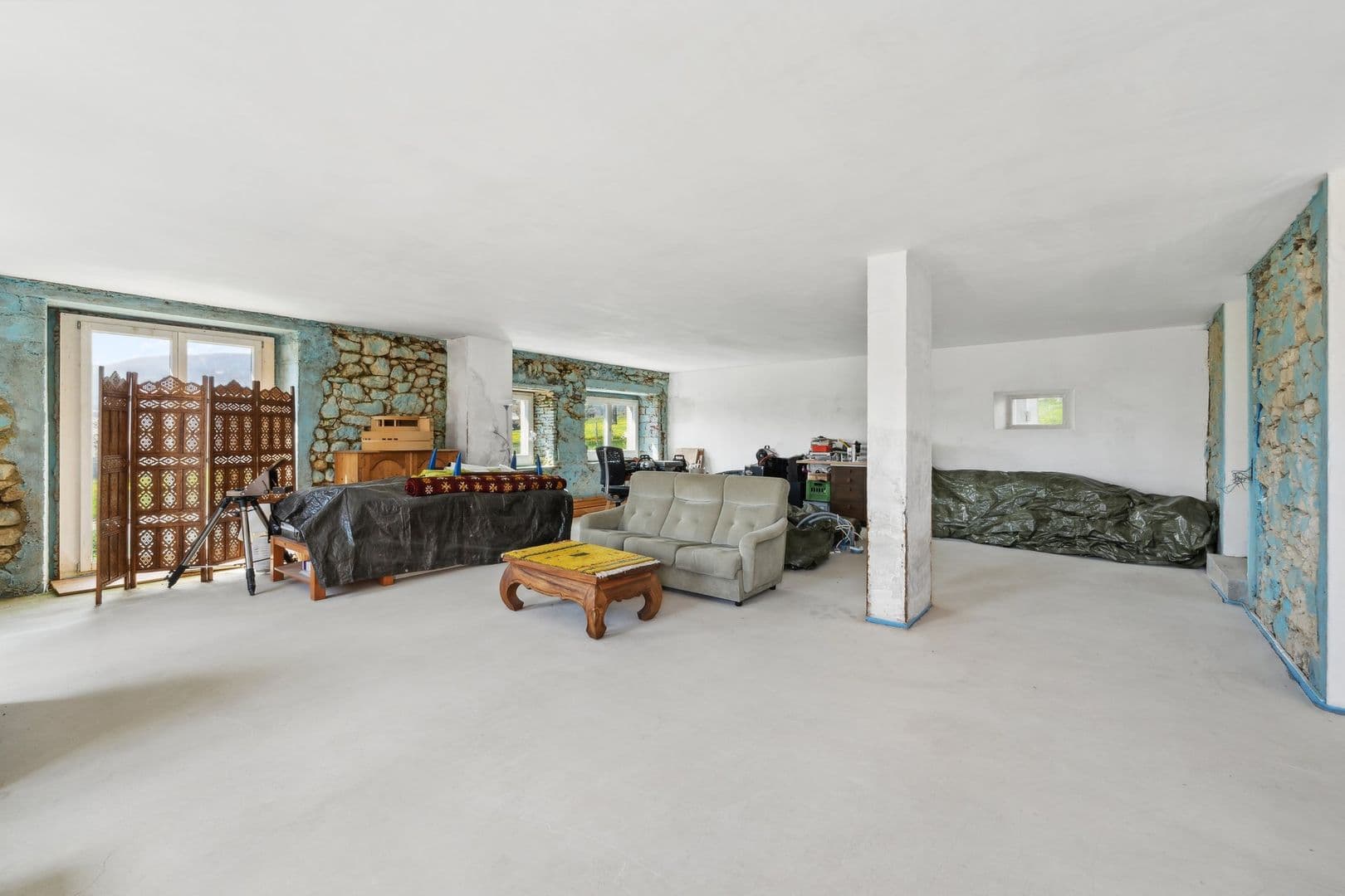 Implantée sur une parcelle de 4'300m², à quelques pas du centre du village, elle a été partiellement rénovée. Les travaux de gros œuvre sont en grande partie réalisés, permettant aux futurs propriétaires de finaliser les finitions selon leurs envies et besoins. Avec une exposition plein sud et de généreux volumes, cette maison dispose de 7 pièces réparties sur près de 300m². Les espaces de vie ont été conçus pour maximiser la luminosité naturelle et offrir un confort optimal.