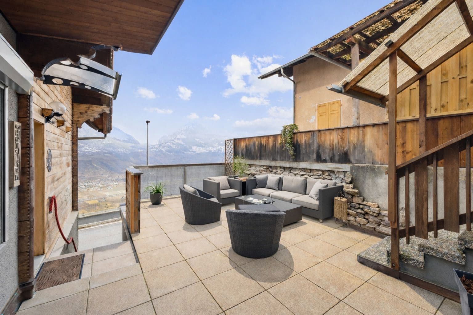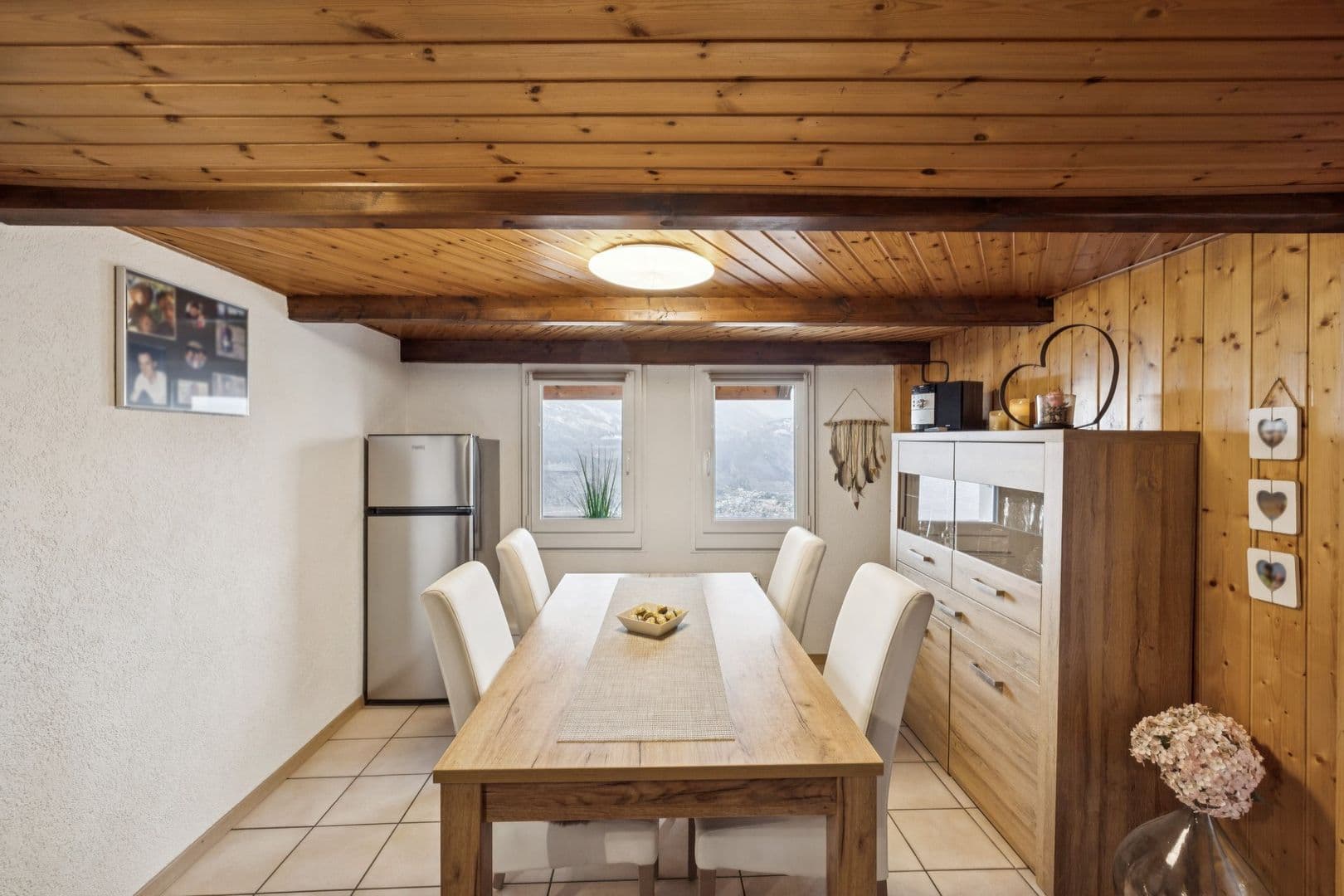 Idéalement située en balcon sur la plaine du Rhône, cette villa de 2 logements est directement accessible depuis la route principale du village. Elle offre une vue à couper le souffle sur toute la plaine de Rhône en contrebas ainsi que sur les montagne en face. Grâce à sa proximité avec la plaine, vous pourrez accéder à toute la zone commerciale de Conthey en seulement 10 minutes. L'accès à la station de Nendaz est aussi privilégié et se fait très rapidement.
