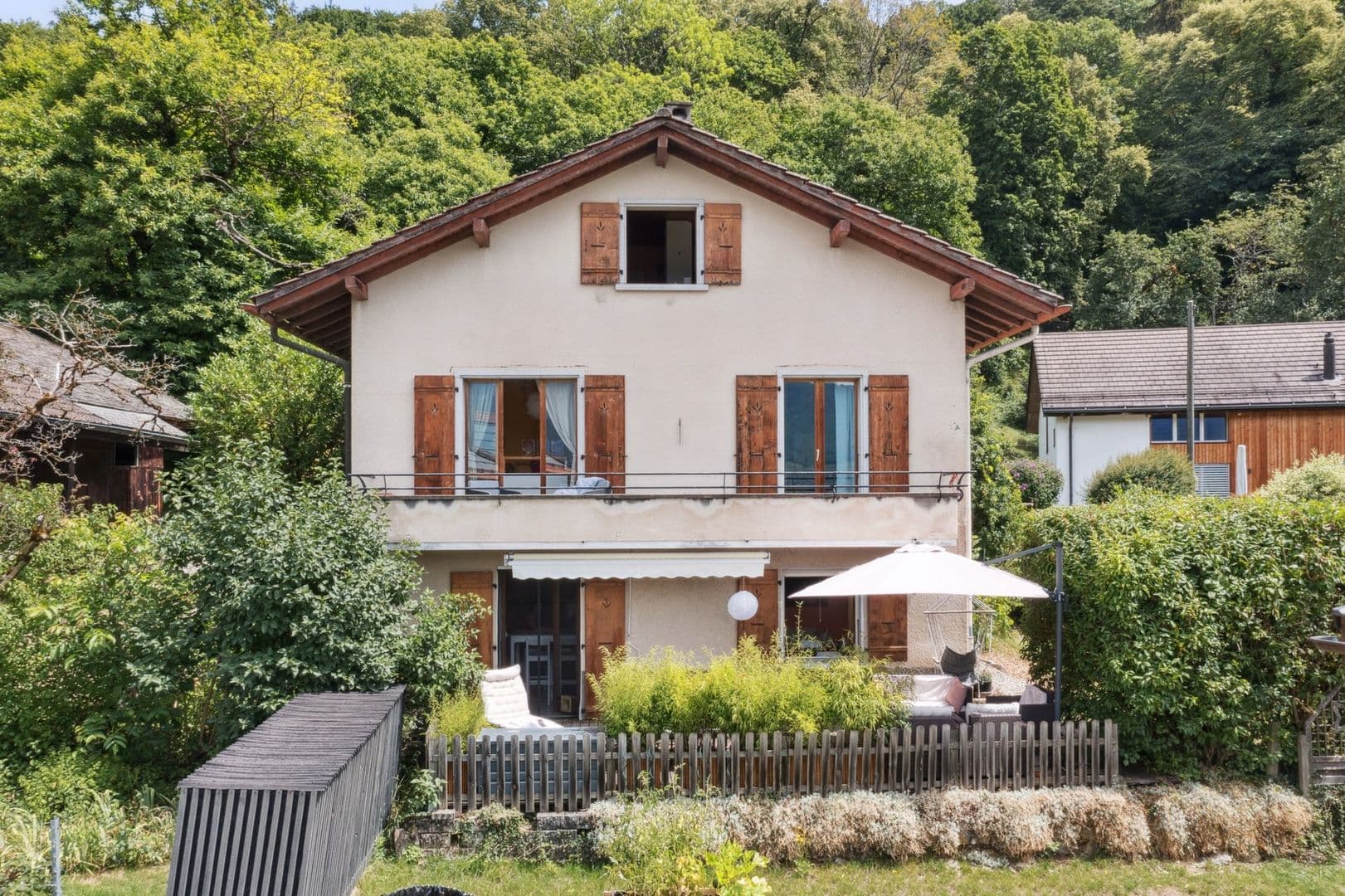 Au bénéfice d'une situation calme, dotée d'une vue magnifique sur les massifs alpins et la vallée du Rhône, dans un cadre verdoyant où la nature y est respectueusement préservée, nous vous présentons cette charmante maison familiale vendue avec d'authentiques et volumineuses annexes, granges, caves et pressoirs pluricentenaires, le tout formant une propriété de charactère au potentiel de rénovation unique.