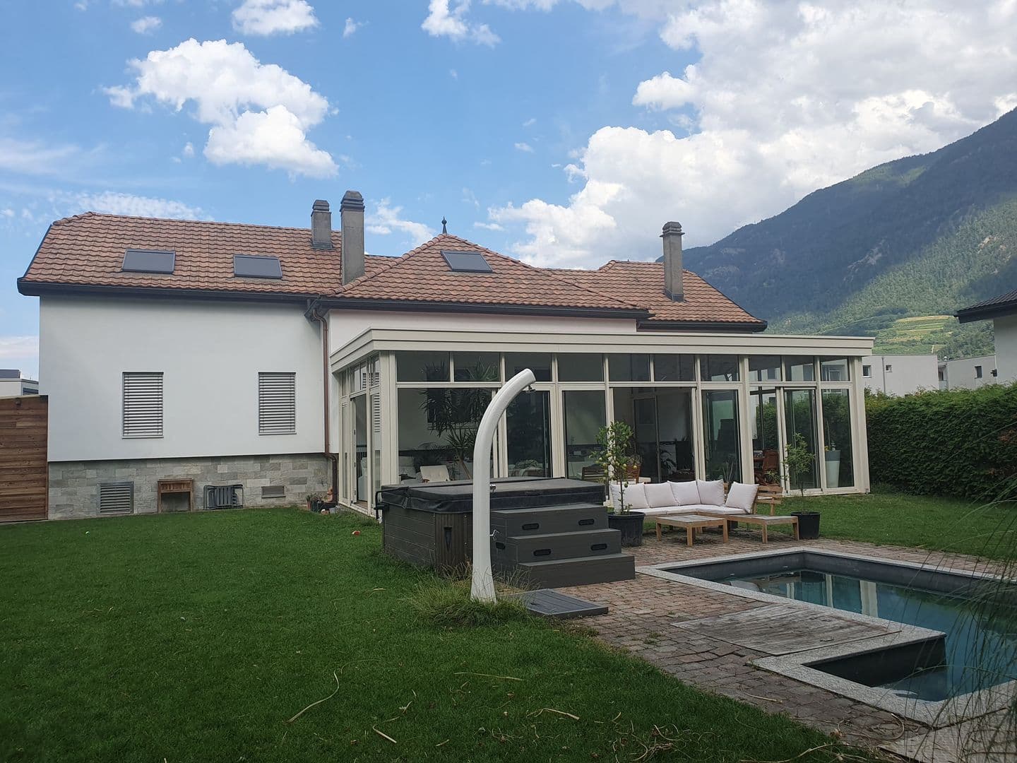 Elle est idéalement située à quelques minutes à pied du centre de Saxon, de la gare CFF et de toutes les commodités et de la sortie d’autoroute. Erigée sur une parcelle de 2'100 m², cette bâtisse a un volume construit de 1'960 m³.