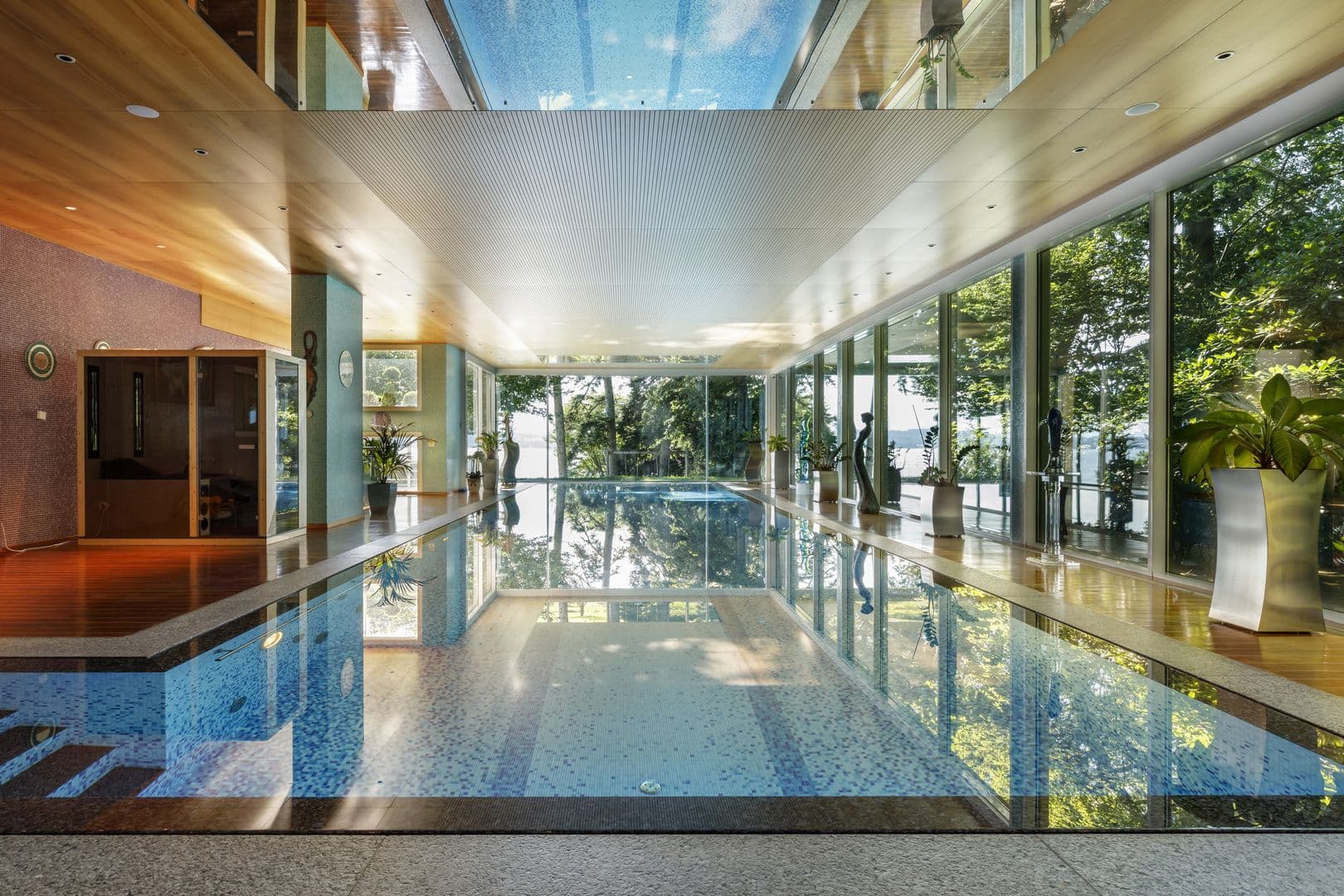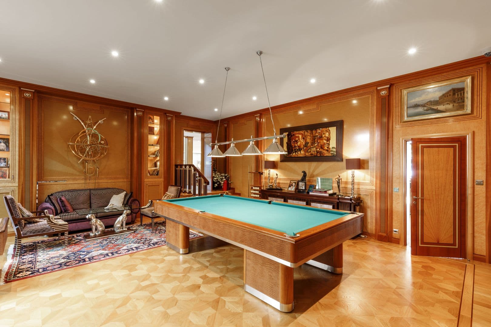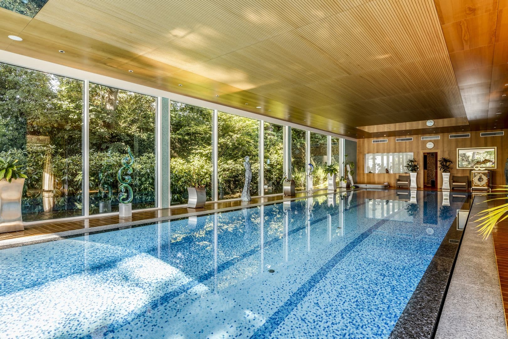 Des pièces volumineuses, des salons de réceptions ainsi qu'une large piscine intérieure avec son SPA et Pool house, cette villa dispose de nombreuses facilités comme un ascenseur, une salle de fitness ou encore une grande salle de jeux.