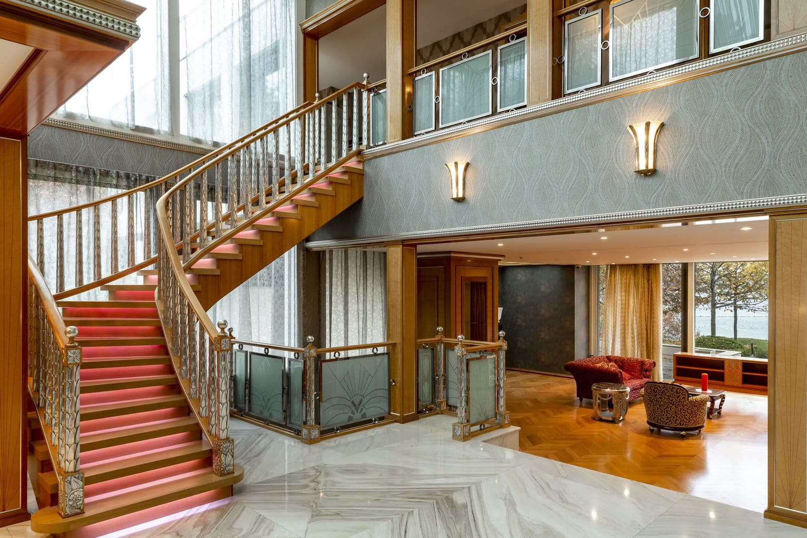 Les matériaux utilisés sont de grande qualité, notamment le marbre et les parquets en chêne.