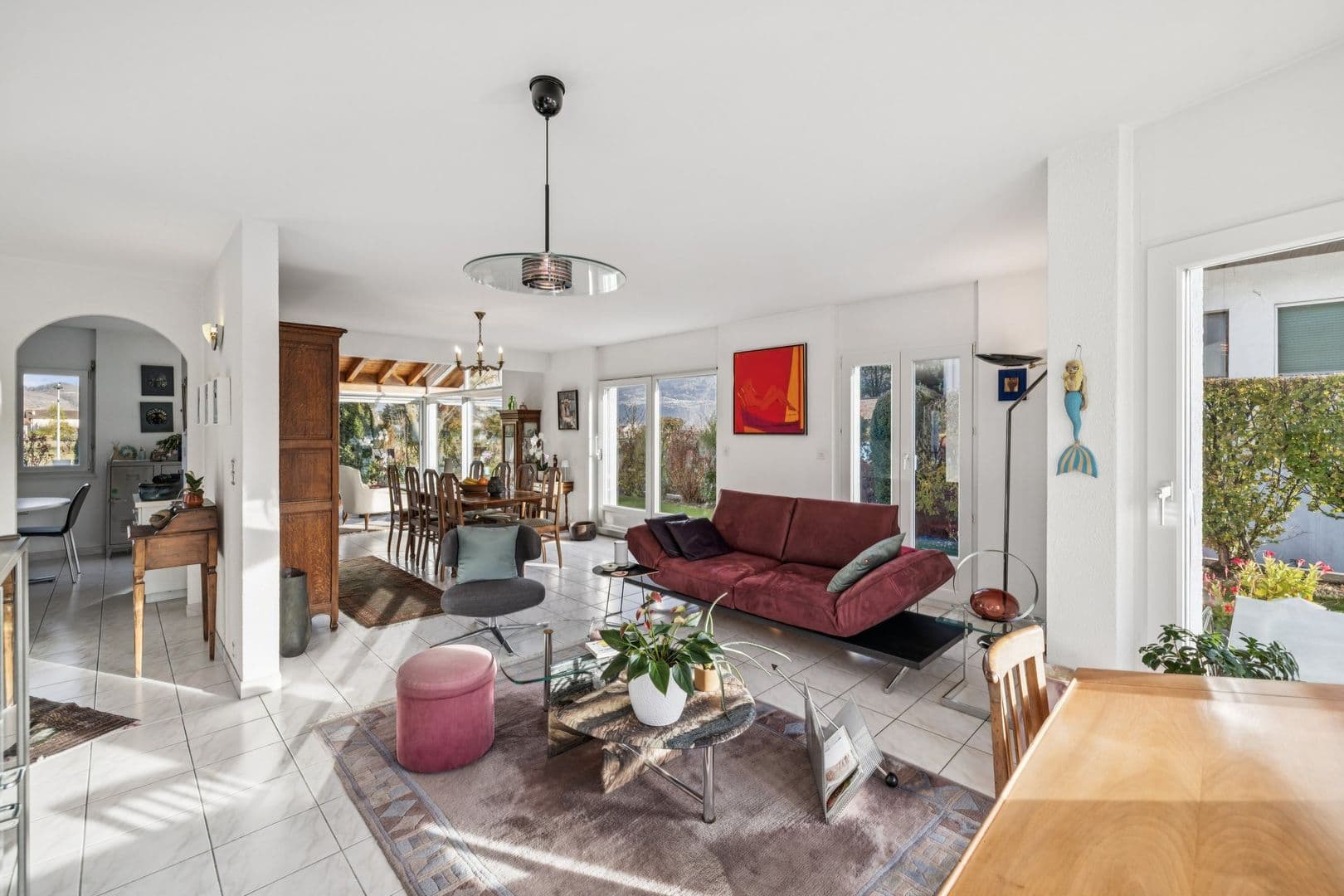 Au cœur de Vétroz, à proximité immédiate de Conthey, cette villa contemporaine séduit par ses volumes généreux et son atmosphère lumineuse. Implantée sur une parcelle parfaitement plane, elle offre un vaste séjour ouvert sur le jardin paysagé, une cuisine moderne entièrement équipée ainsi que six chambres, dont une suite parentale raffinée.