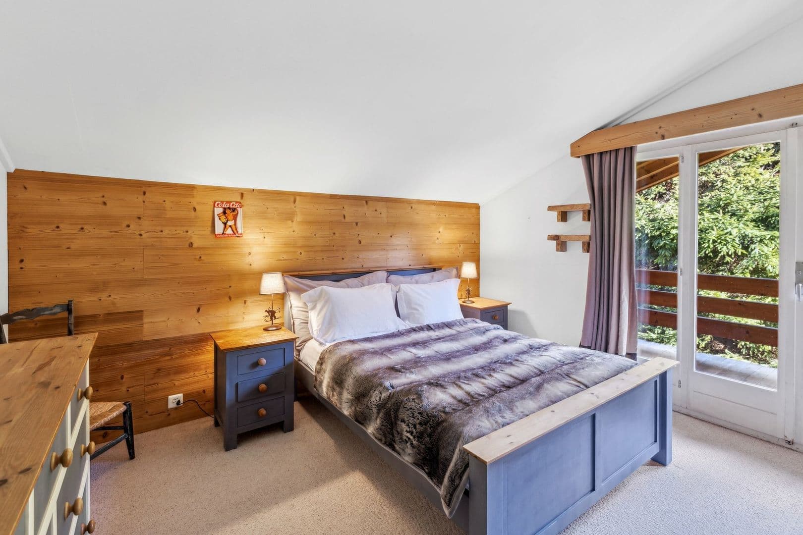 Le chalet est accessible par une allée débouchant sur les nombreuses places de parking extérieures et du double garage fermé.