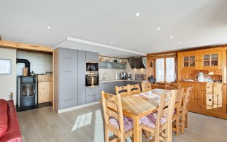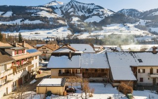 Située au cœur du village, cet immeuble construit en 1965 se compose de deux appartements offrant chacun deux chambres, un séjour lumineux avec accès direct à une loggia, une cuisine fermée, une salle à manger conviviale, ainsi qu'une salle de bains séparée des toilettes.