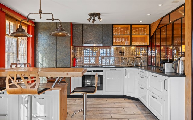 1 cuisine entièrement rénovée avec une verrière en fer forgé authentique,