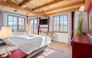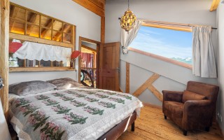 1 chambre spacieuse, aménageable en suite, avec une vue dégagée sur les montagnes,