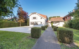 Implantée sur une parcelle arborée de 1’219 m², elle dispose d’un jardin soigné, d’une piscine et d’une terrasse bien exposée, parfaits pour profiter des extérieurs en toute tranquillité. Un garage double et plusieurs places de stationnement viennent également compléter ce bien.