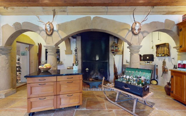- L'Espace Réception : Un salon majestueux, aux dimensions rares, invite à la contemplation et à la convivialité. Il s'ouvre sur une cuisine dînatoire de haute facture, véritable sanctuaire culinaire où modernité et fonctionnalité se rencontrent pour le plaisir des sens.