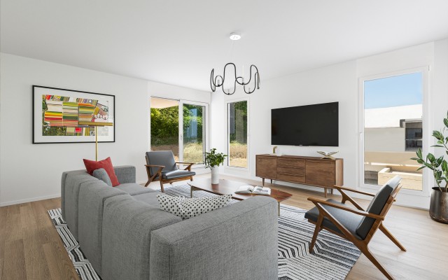 Chaque logement de 5.5 pièces se répartit sur deux niveaux et comprend quatre chambres spacieuses. Les maisons disposent toutes d’un vaste jardin privatif, d’une terrasse conviviale et d’un grand garage, offrant espace et fonctionnalité au quotidien.