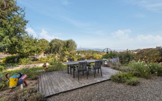 La vaste terrasse de 60 m² ainsi que le grand jardin ont été magnifiquement aménagés donnant un aspect très privatif et beaucoup de charme. La piste de pétanque et le jardin potager agrémentent ce lieu de détente.
